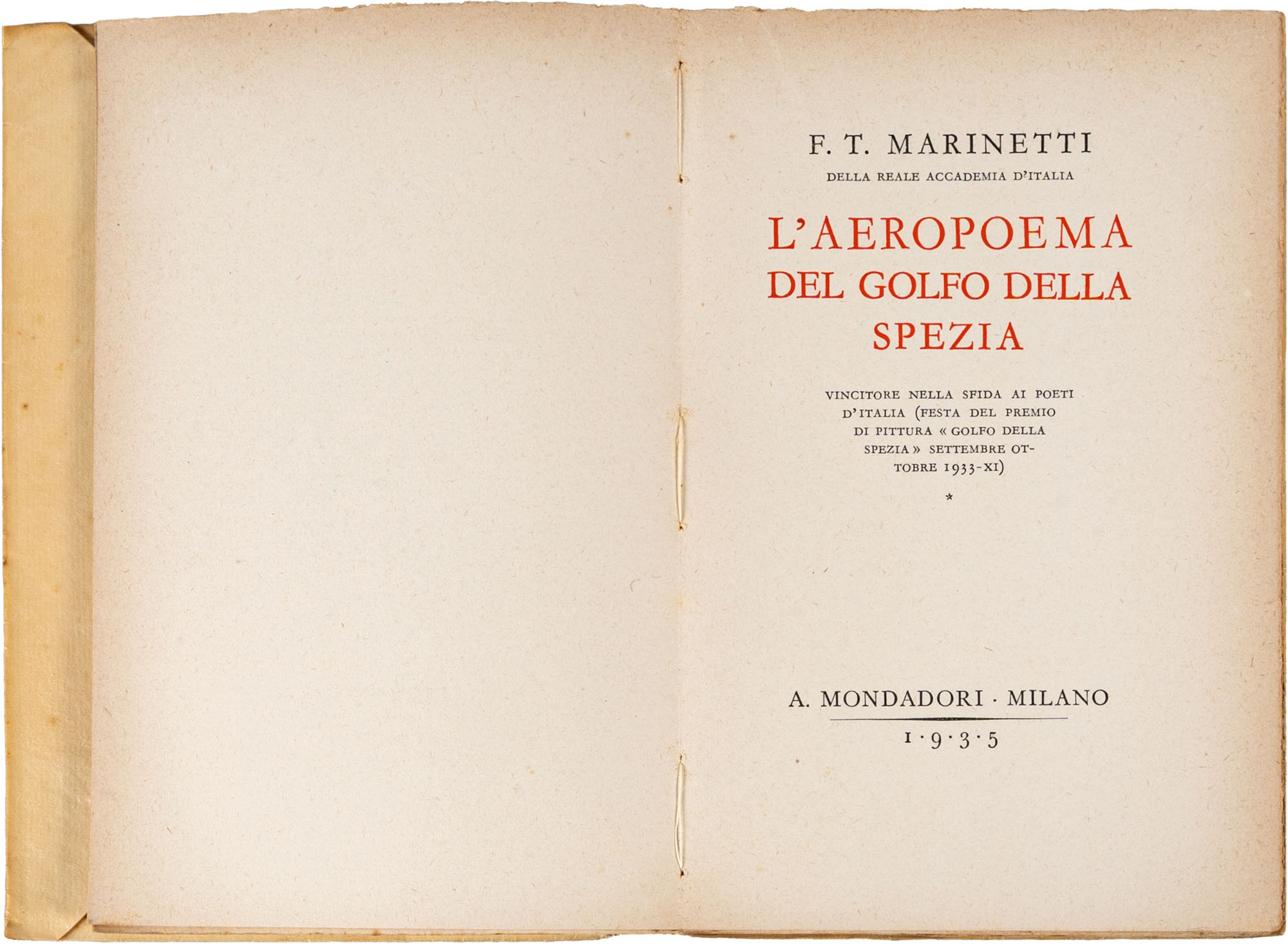 MARINETTI F. TOMMASO - L'AEROPOEMA DEL GOLFO DELLA SPEZIA1^ ed. 1935,...