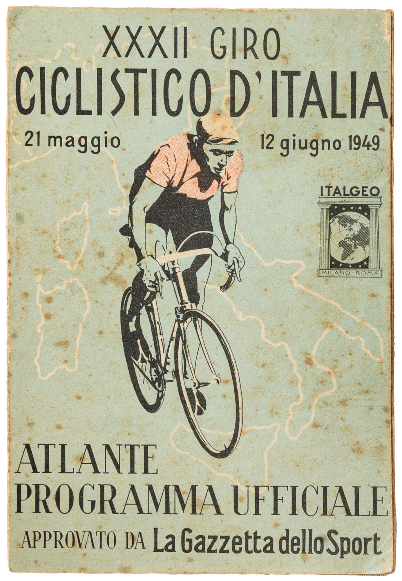 SPORT CICLISMO - XXXII Giro d'ItaliaPp. 10 + copertine16 x 11 cm.Atlante programma ufficiale con mappe approvato da 'La Gazzetta Dello Sport' del 12 giugno 1949. La corsa rosa fu vinta da Fausto CoppiCondizioni generali molto buone