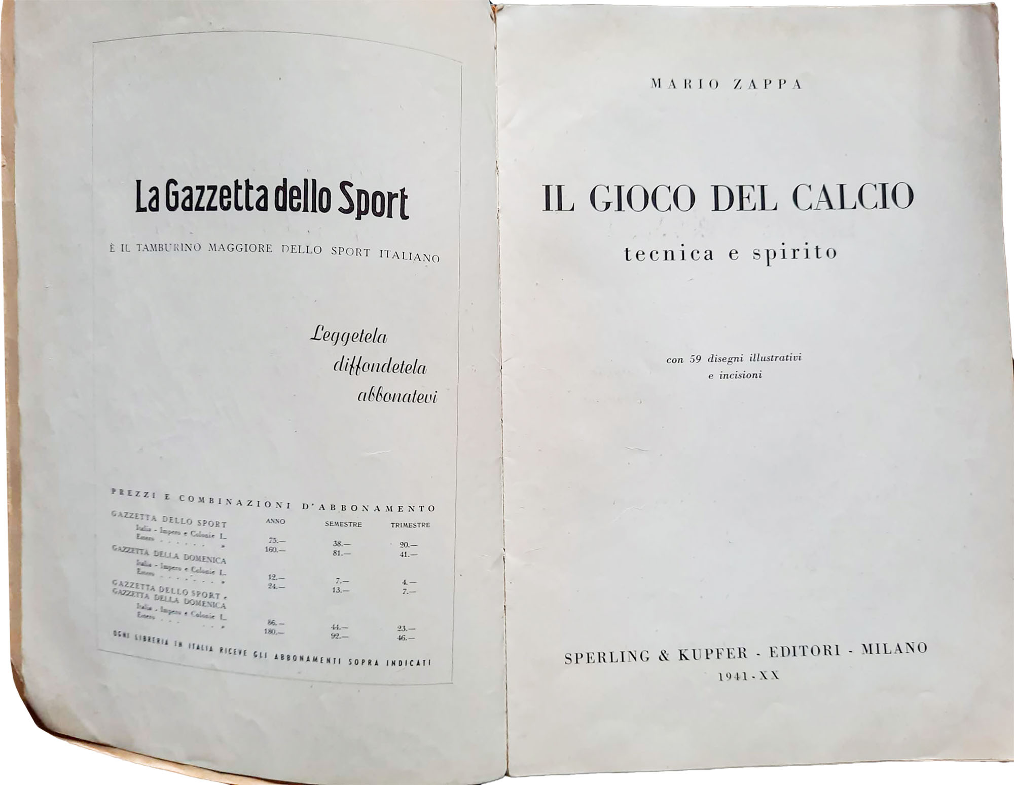 ZAPPA MARIO - IL GIOCO DEL CALCIO - TECNICA E SPIRITO1^ ed. 1941, Sperling &...