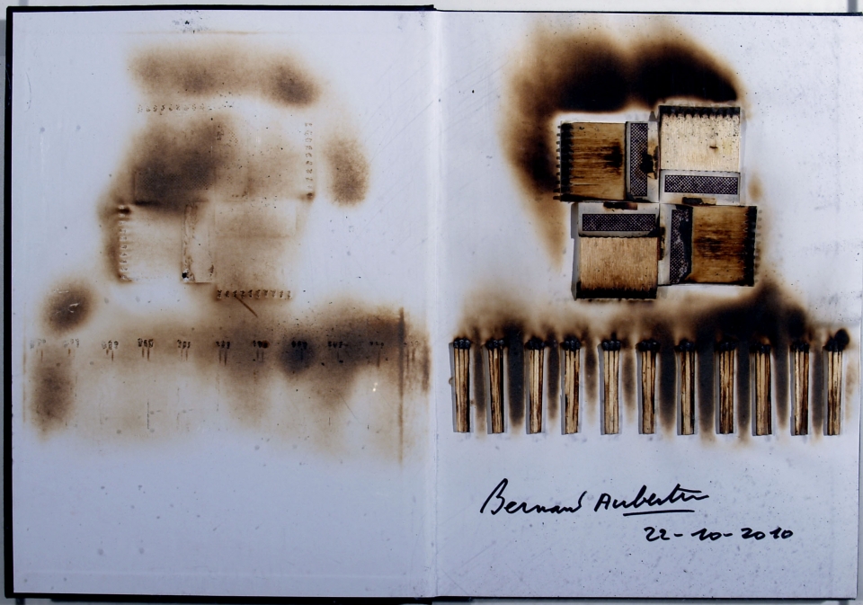 AUBERTIN BERNARD (Fontenay aux Roses 1934) "Libro" 2010 Fiammiferi bruciati...
