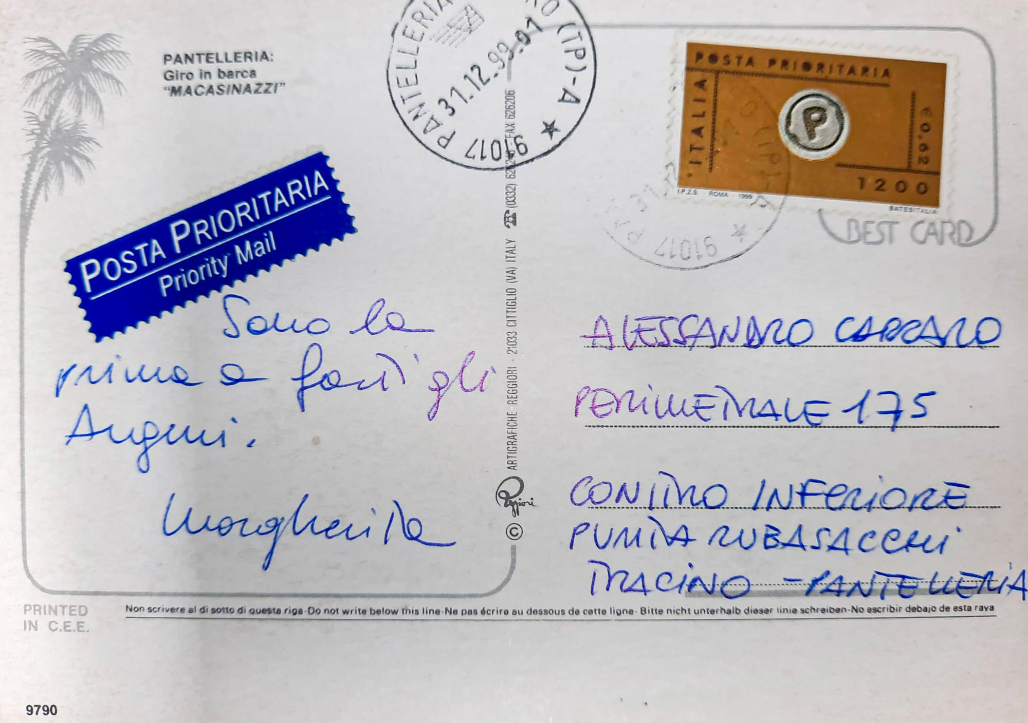 CARTOLINA PantelleriaViaggiata con timbro di partenza e di arrivo 31 dicembre 1999, ore 24Passaggio del secondo millennio