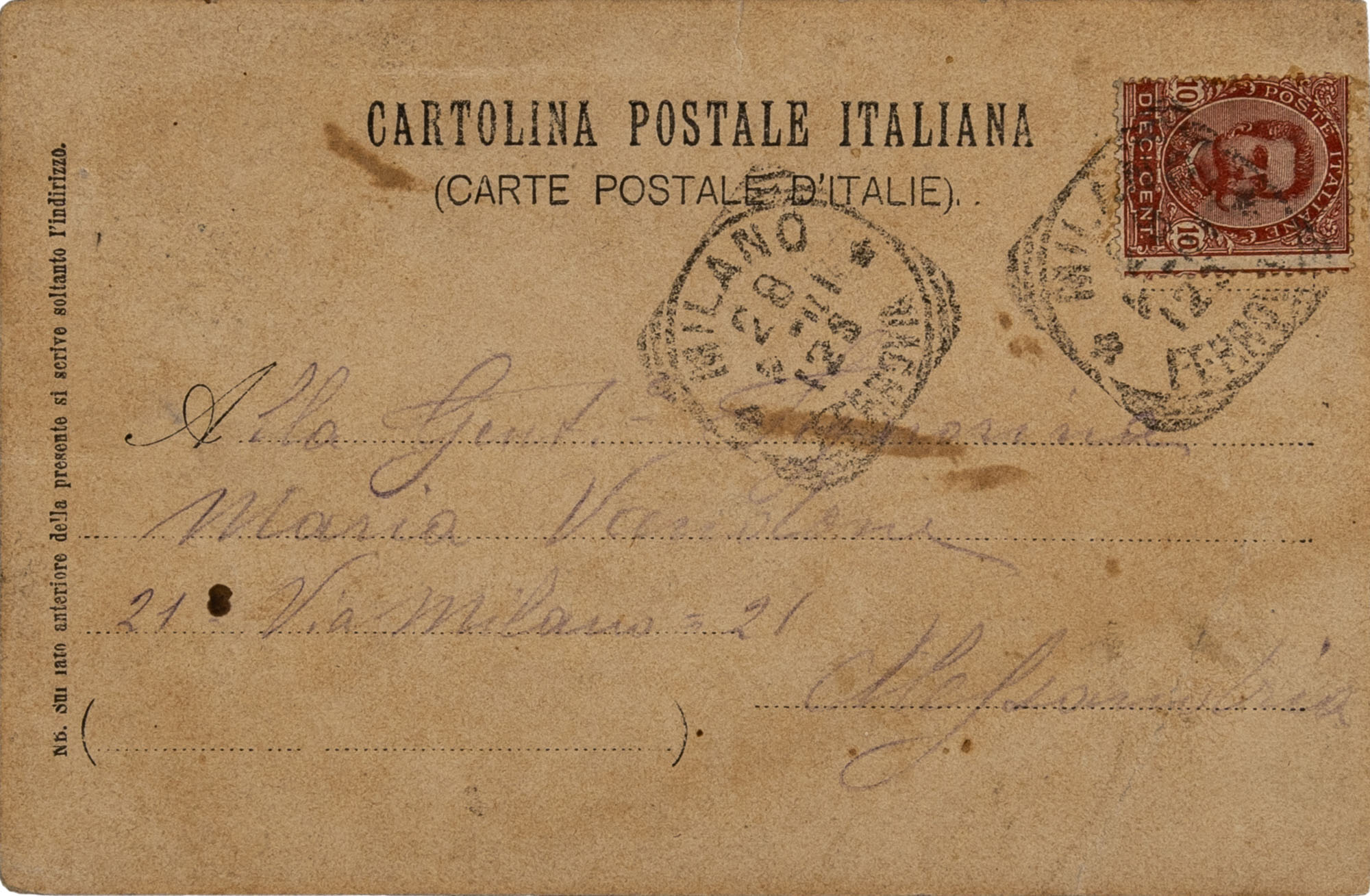 Cartolina viaggiata marzo 1901 e spedita dall'autore dello scatto della fotografia presente alla cerimonia