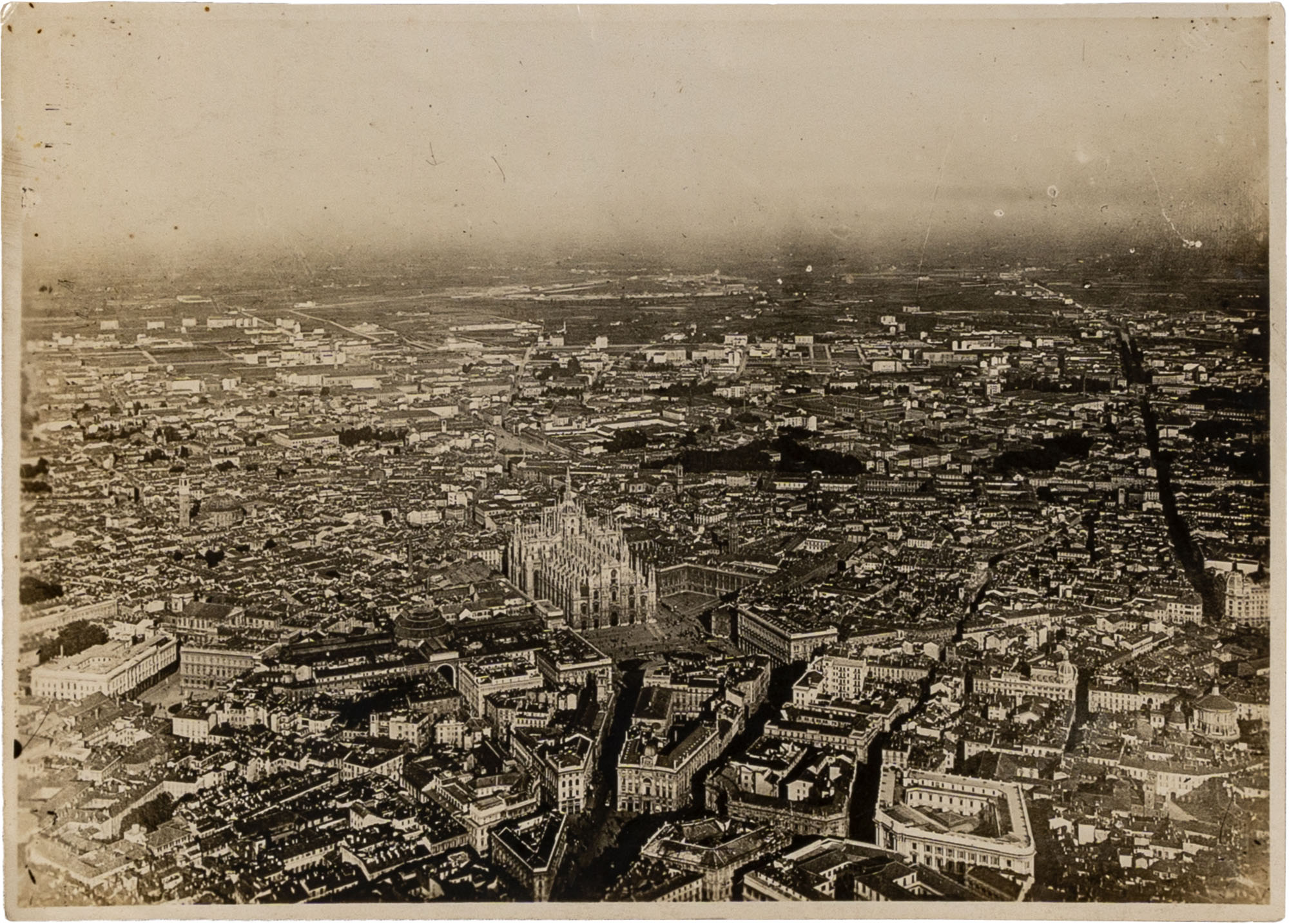 MILANO - FOTOGRAFIA DELLA CITTA' RIPRESA DALL'ALTODalla ditta Angelo Bonfanti, 183417,7 x 12,7 cm.Interessante notare i terreni agricoli molto vicini al centroCondizioni generali buone