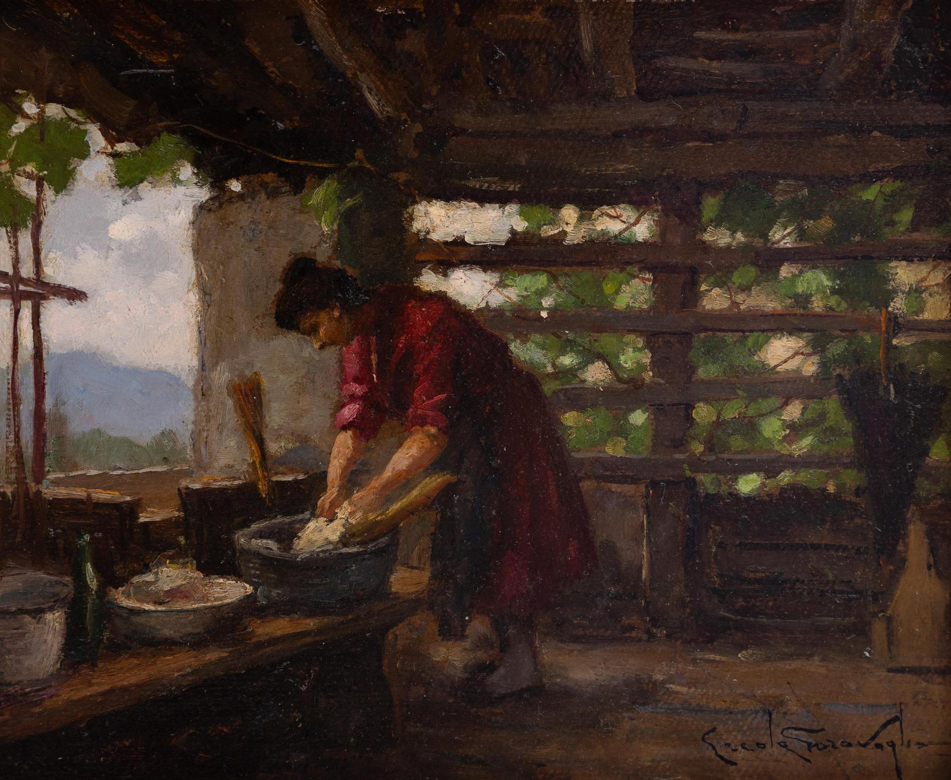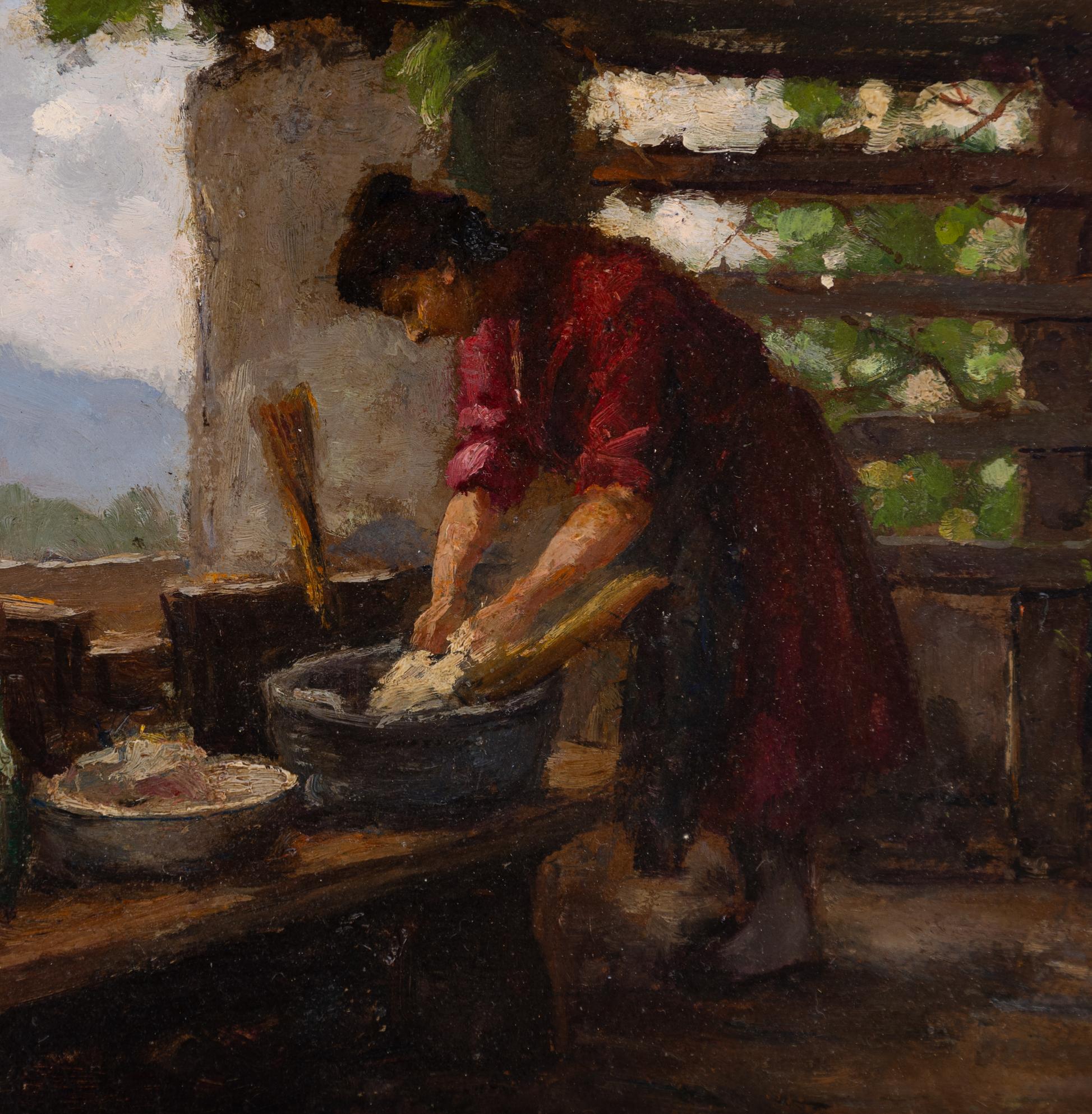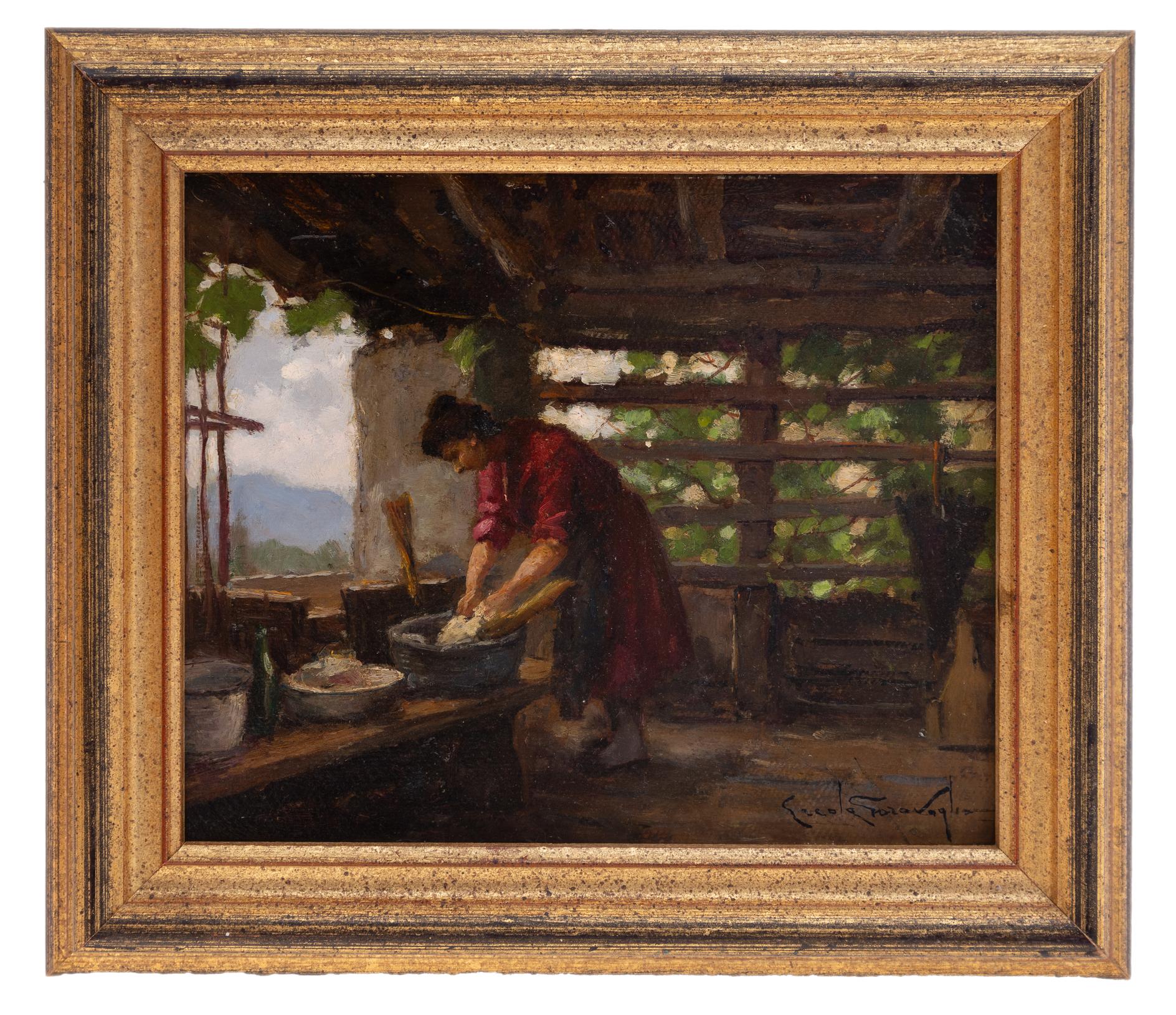 Ercole Garavaglia - Cucinando (Magreglio) - Attivo in Lombardia tra XIX e XX secolo - Olio su cartone cm 24x29,5