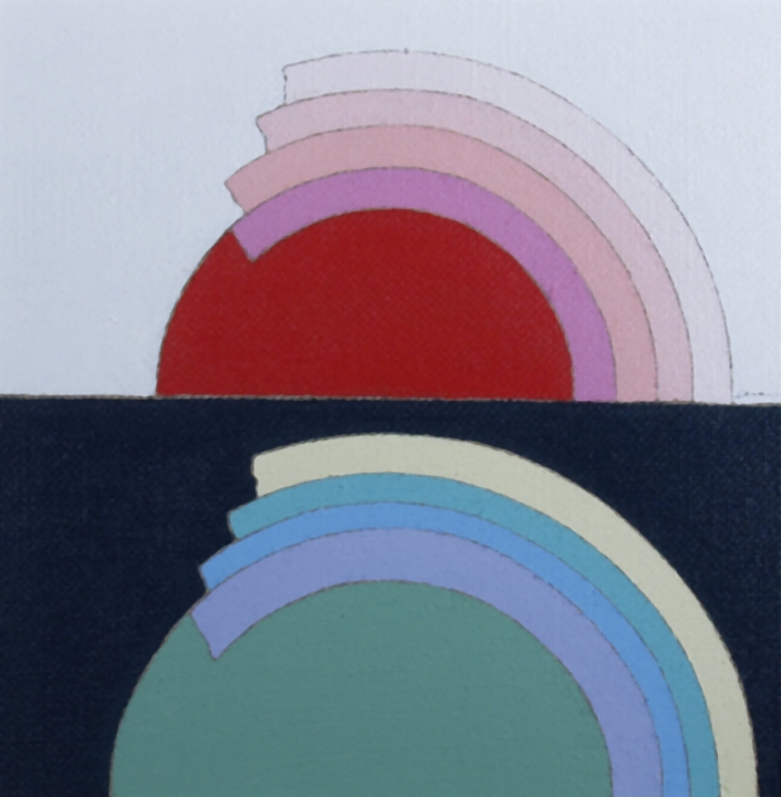 "Due ipotesi" 2007 Acrilici su juta cm. H: 30.00 L: 30.00 Titolo, firma ed anno al retro. Autentica dell'autore su foto.