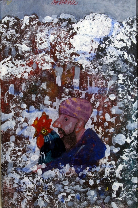 POSSENTI ANTONIO (Lucca 1933) "Figura con gallo" Olio su cartone telato cm....