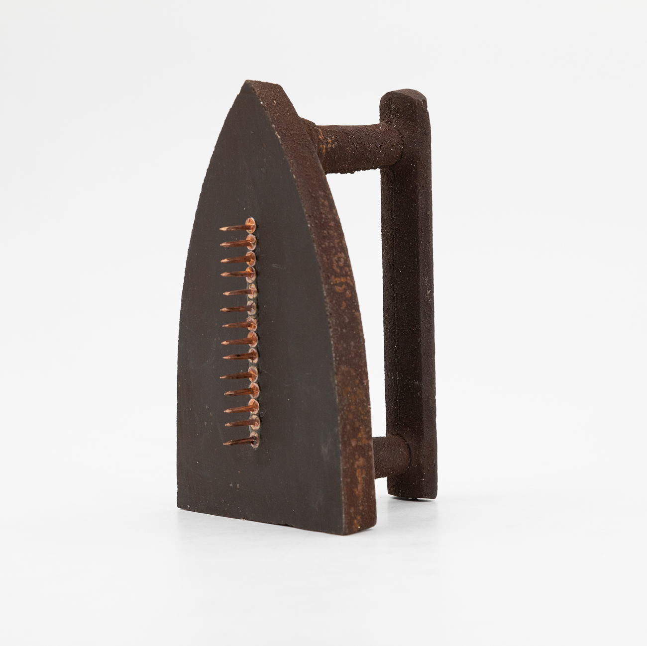 Opera multipla realizzata con ferro da stiro in ghisa e chiodi