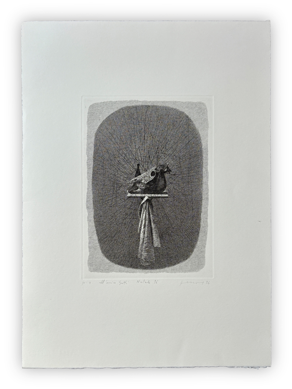 Firma, datazione, dedica ad personam e numerazione (Esemplare P.A.) a matita al fronte