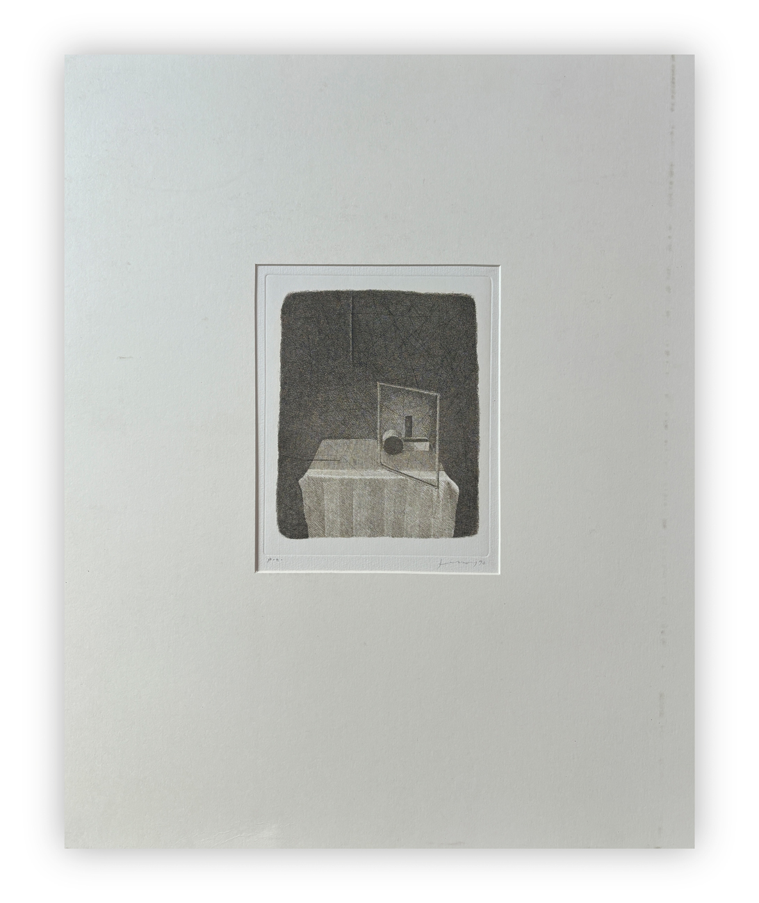 II Stato: edizione di 60 copie in numeri arabi, X copie in numeri romani, 4 copie p.d.a. in colore grigio e 2 copie p.d.a. in nero su carta antica