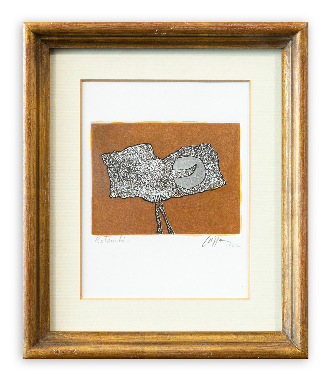 Firma, datazione e iscrizione "Retrouché" a matita al fronte