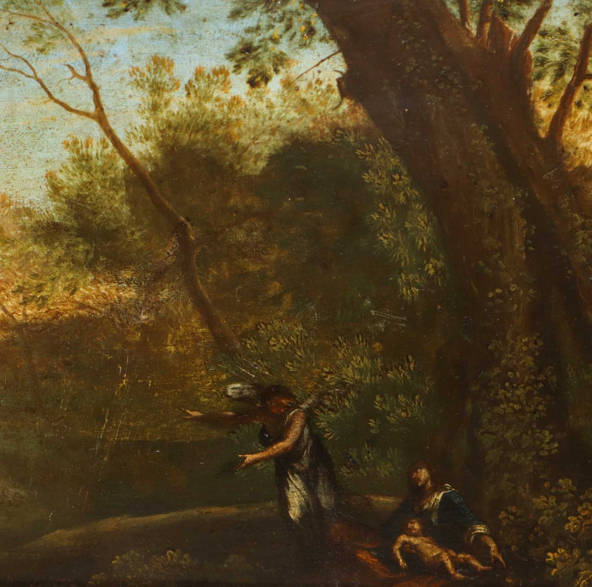 Gioseffo Dal Sole (ambito di) (1654-1719) - Giuseppe e il Bambin Gesù avvertiti dall'Angelo che Erode vuole uccidere tutti i bambini nati quell'anno, 18° secolo h cm 22X30 in cornice h cm 32X40 Olio su rame