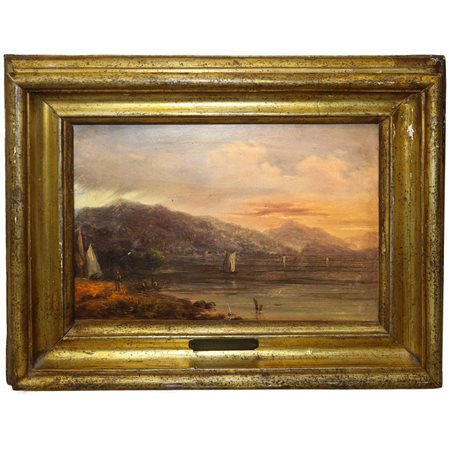 Antonie VAN SMINCK PITLOO (1791-1837) - Paesaggio marino con barche e personaggi h cm 19X28 in cornice h cm 30X39 olio su tela Scuola di Posillipo