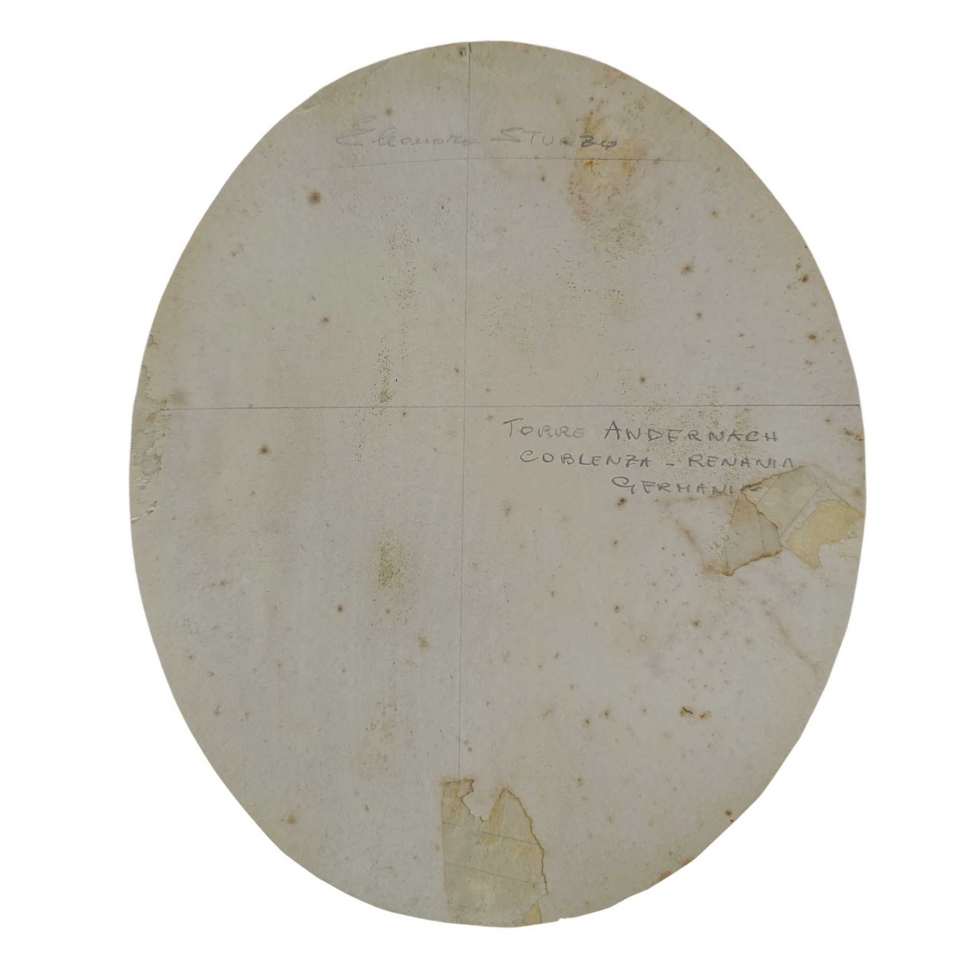 Emanuela Sturzo, sorella gemella di Don Luigi Sturzo (Caltagirone 1871-1948) - Torre Andernach a Coblenza-Renania Germania cm 20,2X17 disegno a mativa ovale Firmato in basso a destra Emanuela Sturzo (gemella Don Luigi Sturzo)