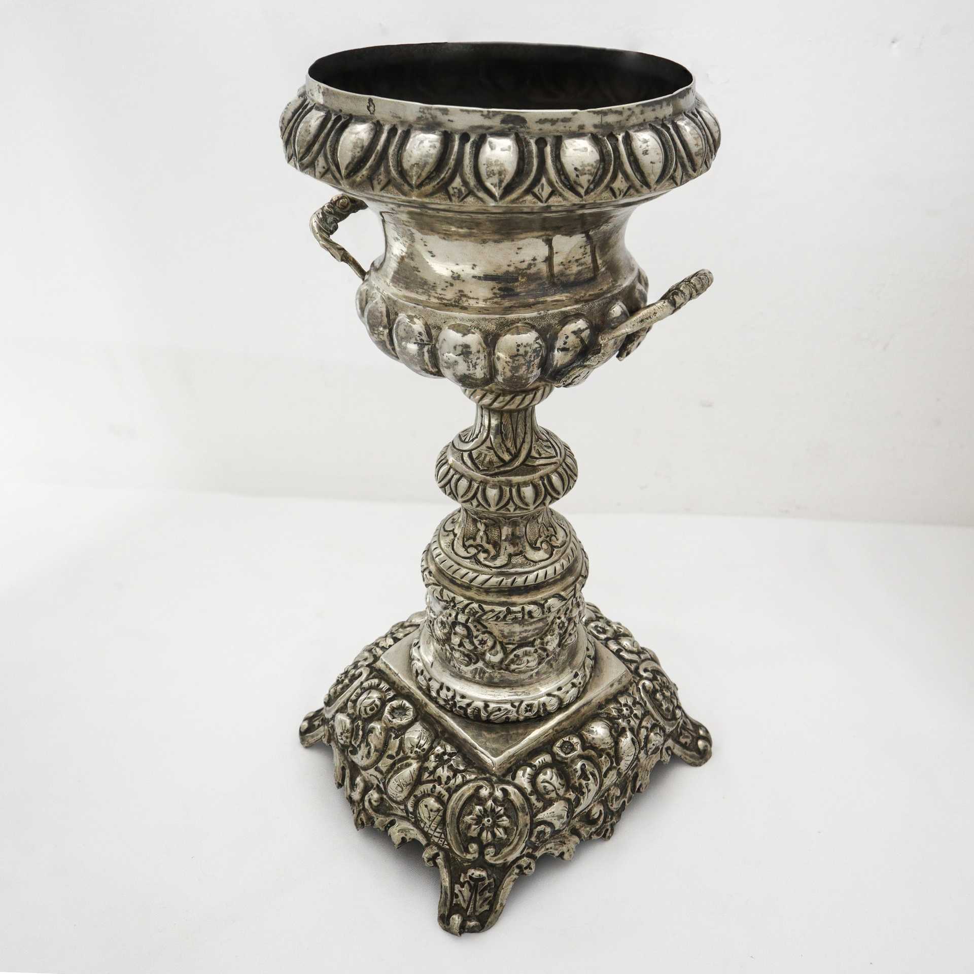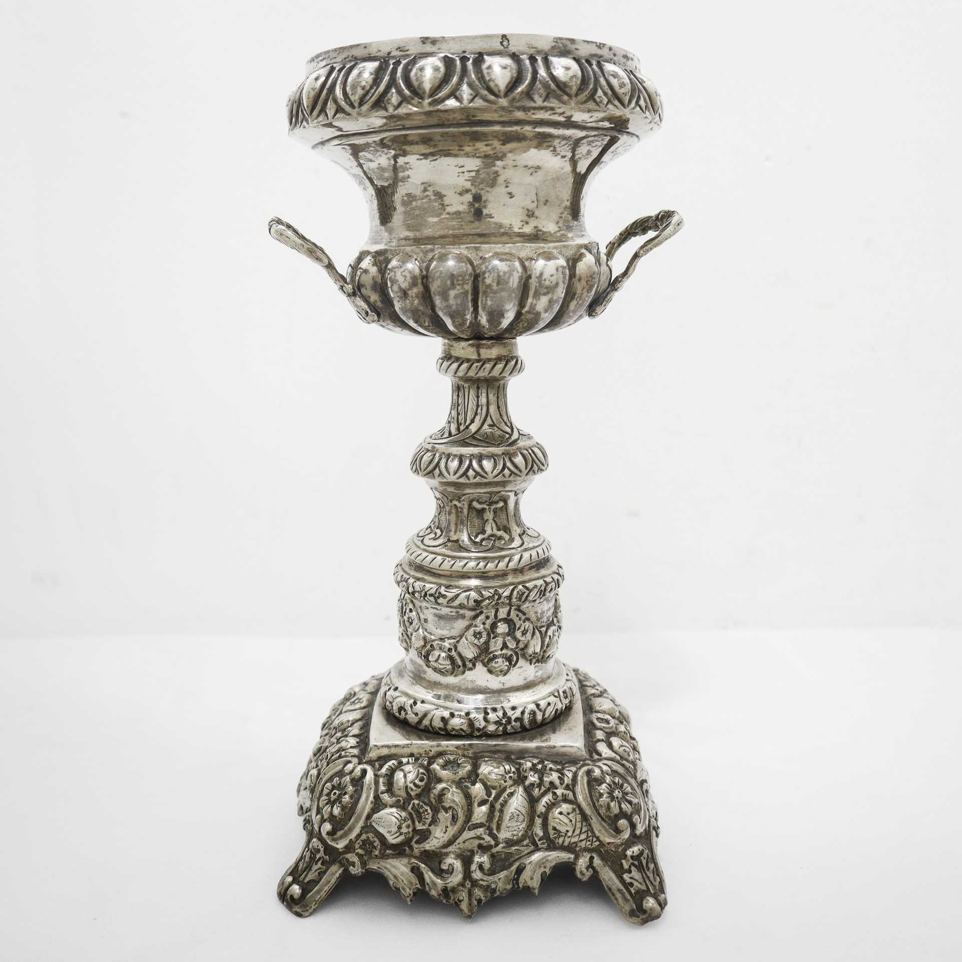Precedente Lotto 74 Successivo Art La Rosa Casa d'Aste - Viale Africa 12, 95129 CATANIA #122: Dipinti e Mobili Antichi e Oggetti d'arte #122: Dipinti e Mobili Antichi e Oggetti d'arte venerdì 21 marzo 2025 ore 17:00 (UTC +01:00) Calice in argento Calice in argento h cm 24 gr 296