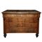 Cassettone a 4 cassetti in piuma di mogano con bocchette a losanga, testine in legno nero ebanizzato scolpite applicate ai lati , first half of the 19° secolo