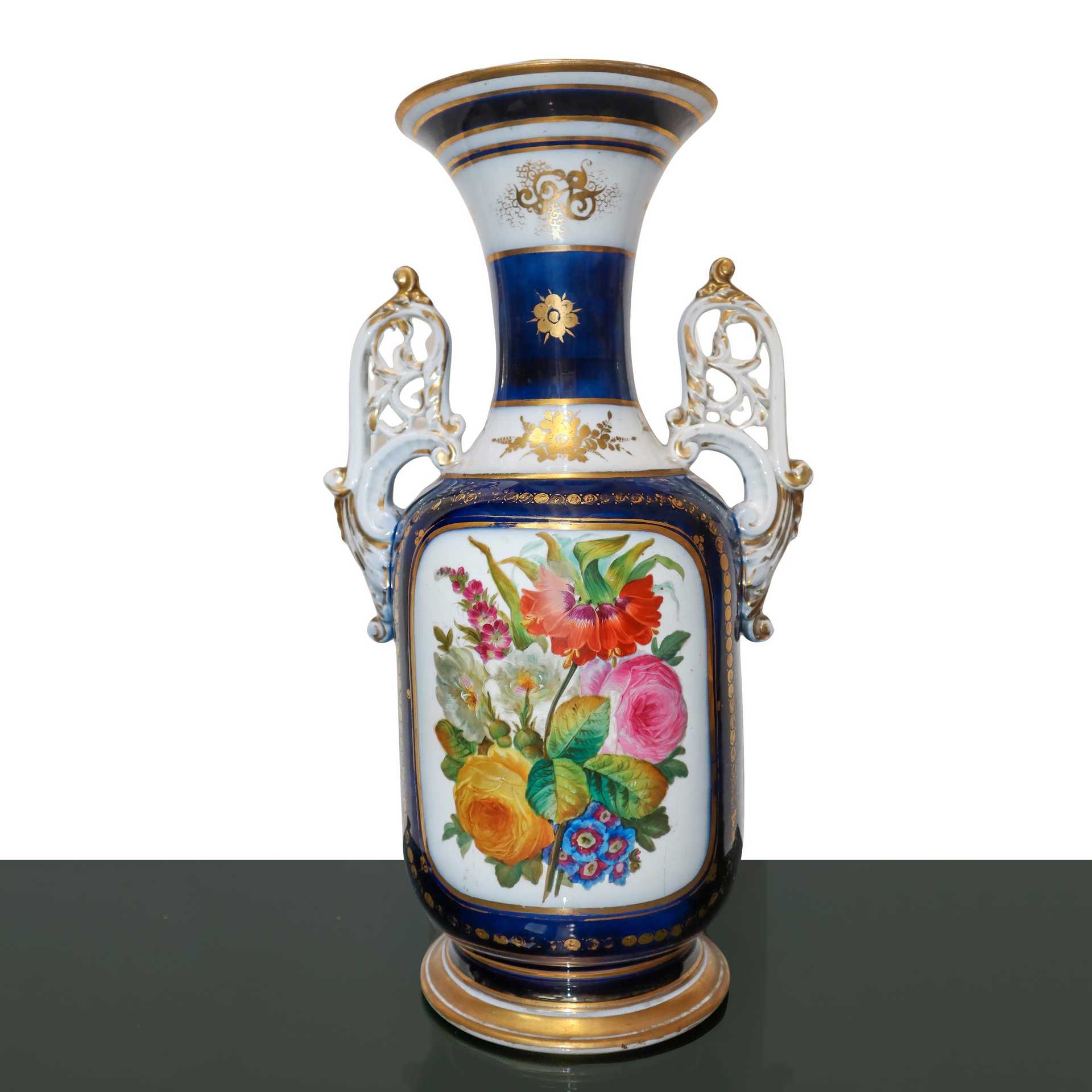 Vaso blu con decorazioni floreali, France 19° secolo H cm 50 Vecchia Francia.Vecchia Francia.
