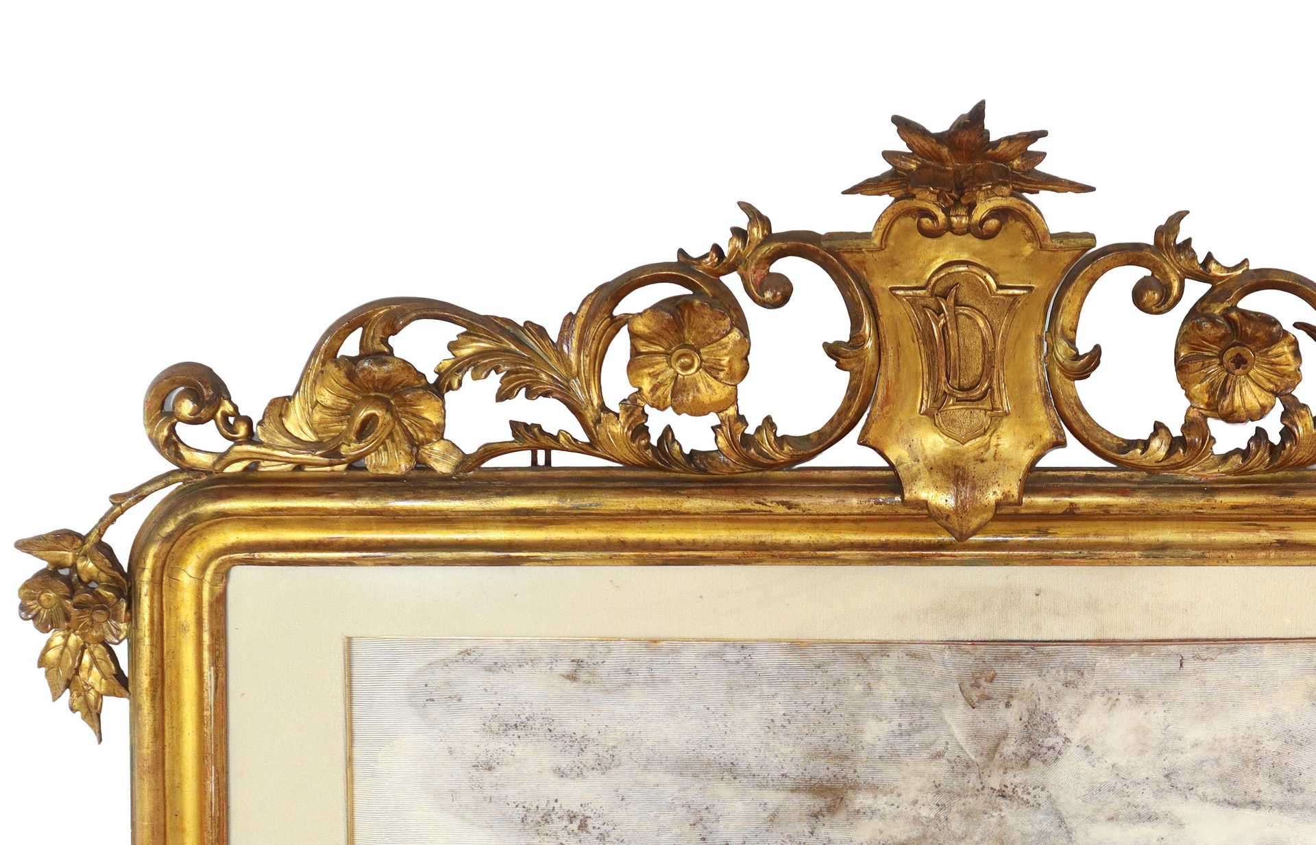 Lotto 162 | Grande Cornice dorata in legno con cimasa contenente acquaforte di città medievale