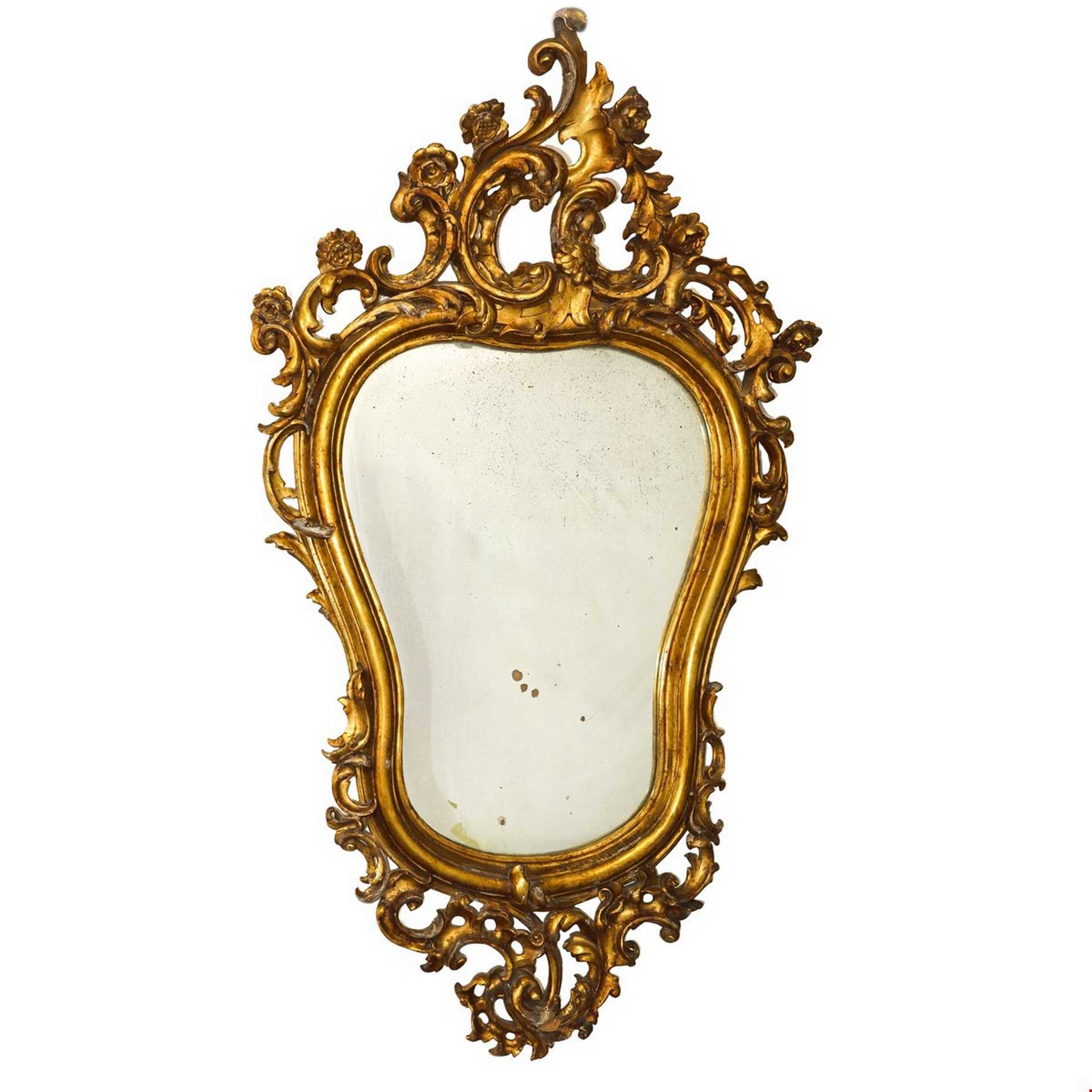 Specchiera in legno dorato Luigi XV con specchio al mercurio, 18° secolo