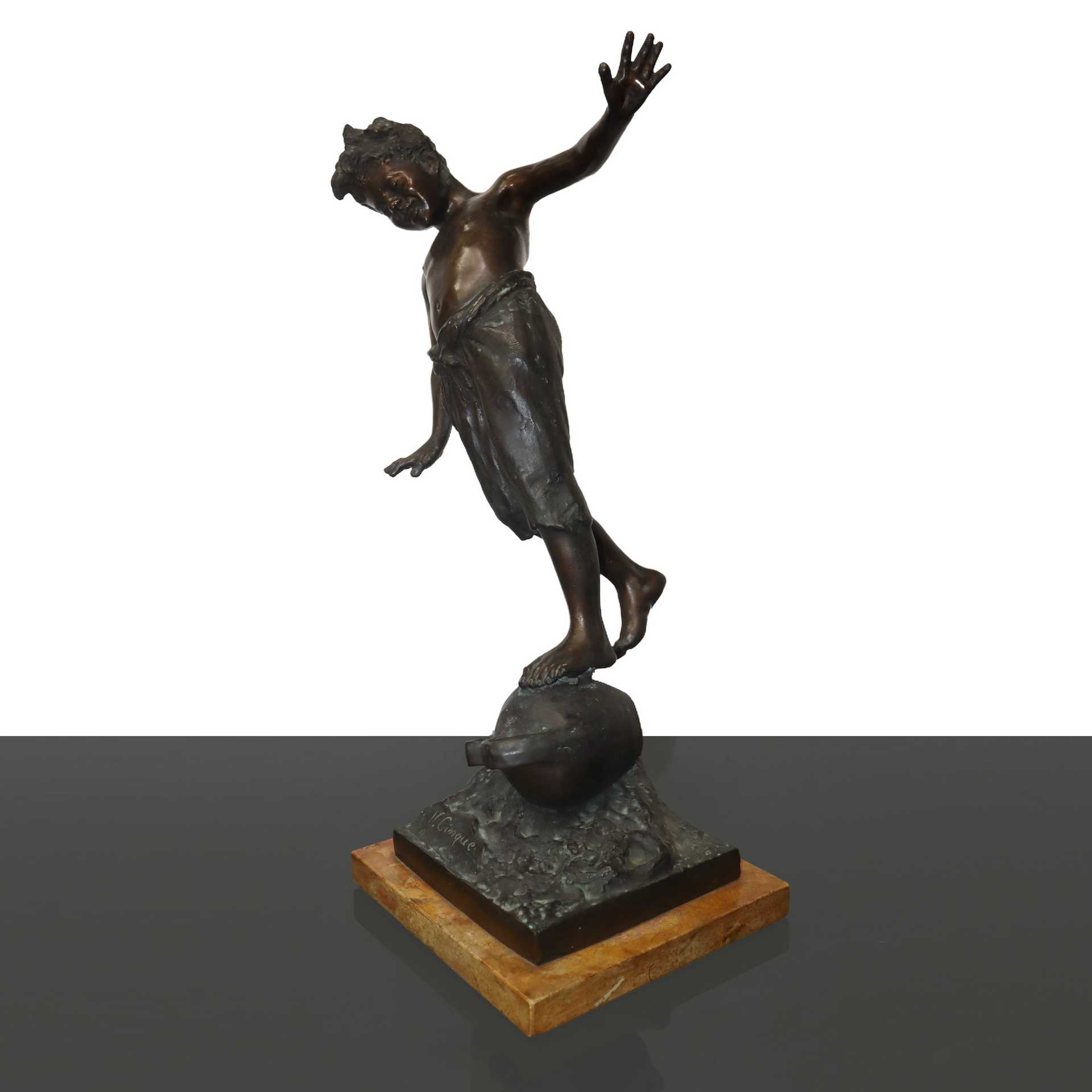 Vincenzo Cinque (Napoli 1852-Napoli 1929) - Ragazzo in equilibrio su brocca, scultura in bronzo patinato bruno