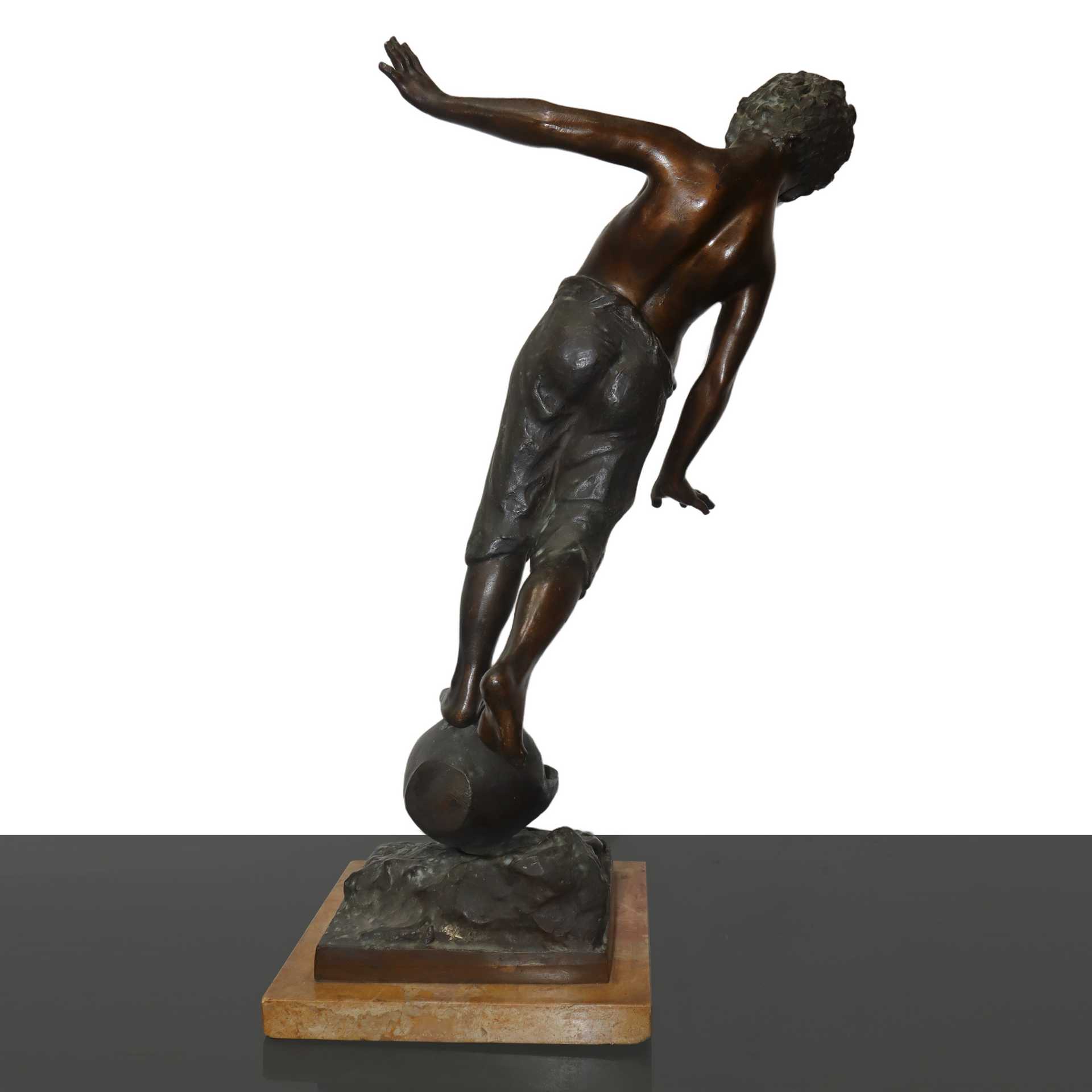 Vincenzo Cinque (Napoli 1852-Napoli 1929) - Ragazzo in equilibrio su brocca, scultura in bronzo patinato bruno H cm 45, base in marmo cm 2