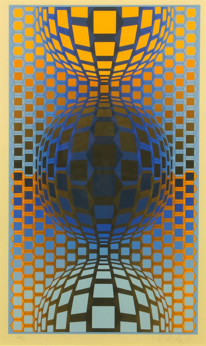 VASARELY VICTOR H 1908 - 1997 F "Senza titolo" 70x41 litografia a colori, es....