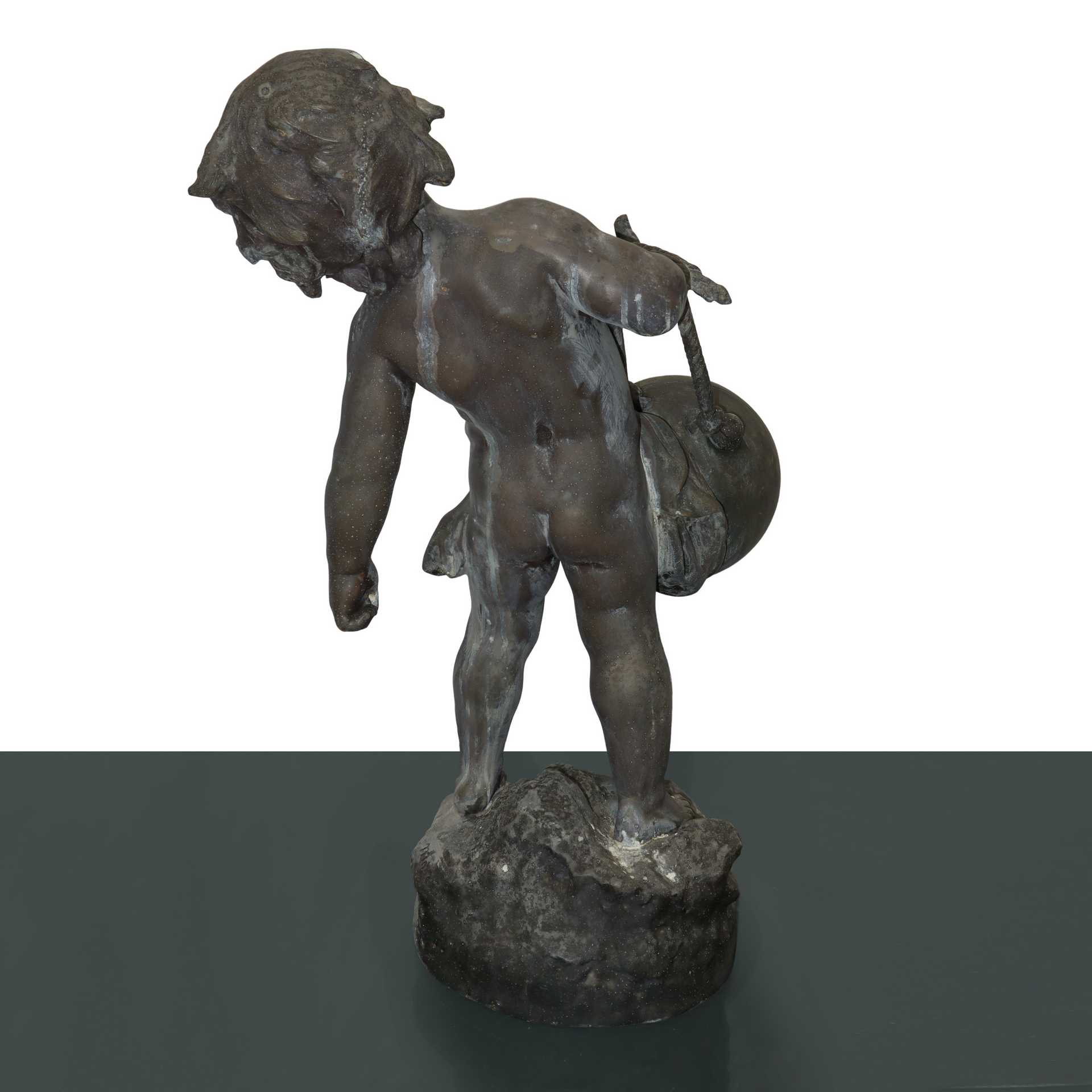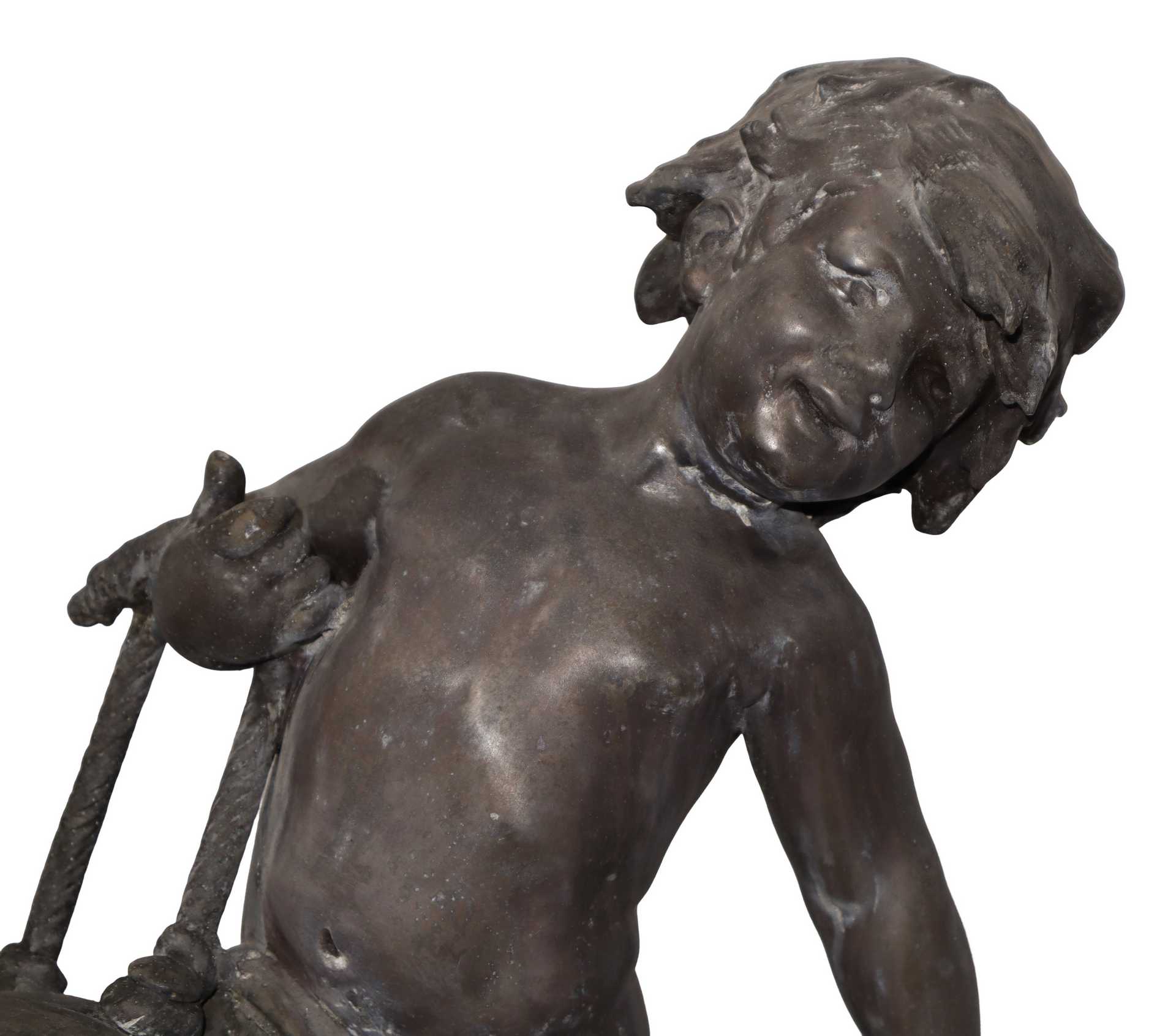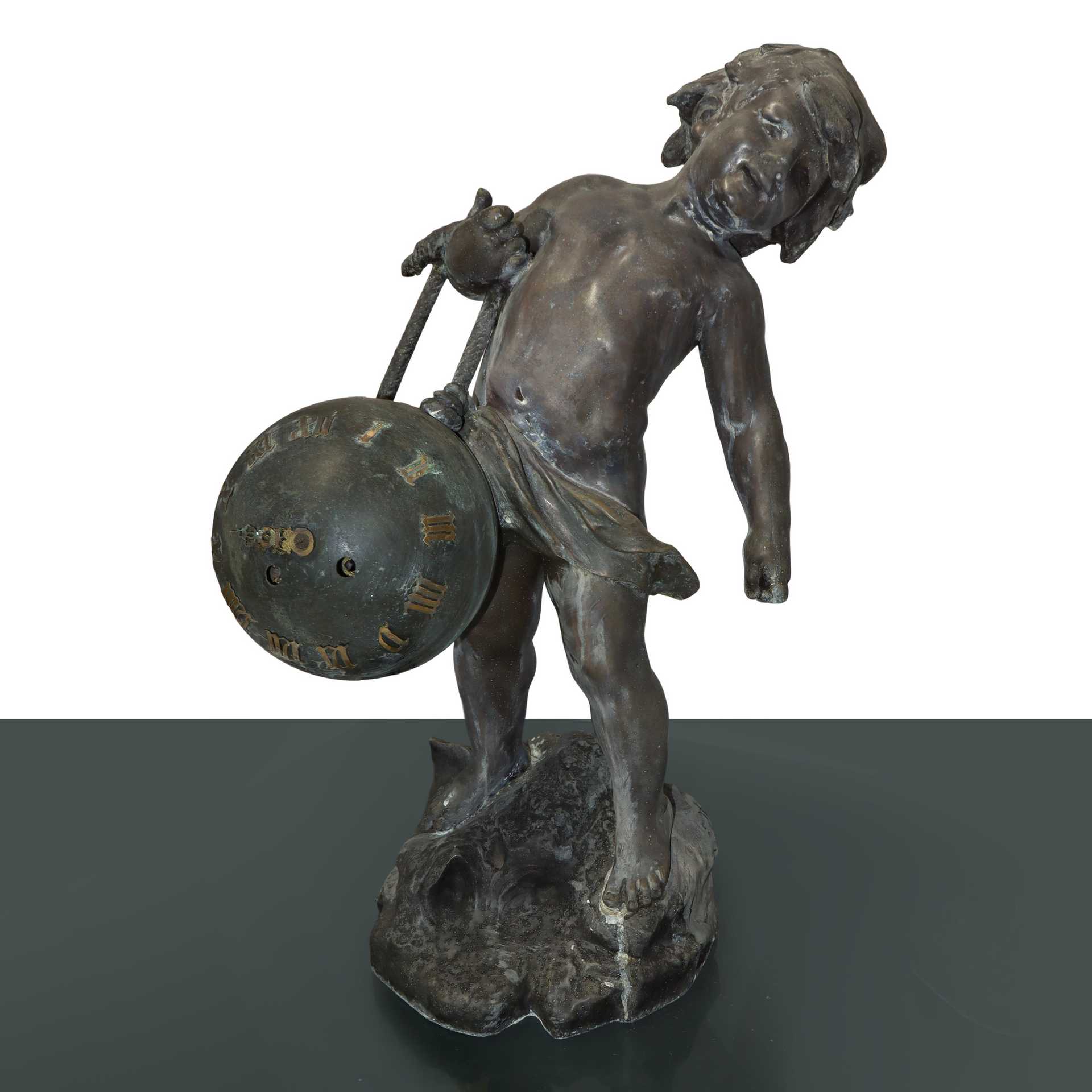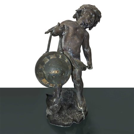 Auguste Moreau (Digione 22 febbraio 1834-Digione 11 novembre 1911) - Bimbo con orologio h cm 59 bronzo a cera persa Orologio da revisionare