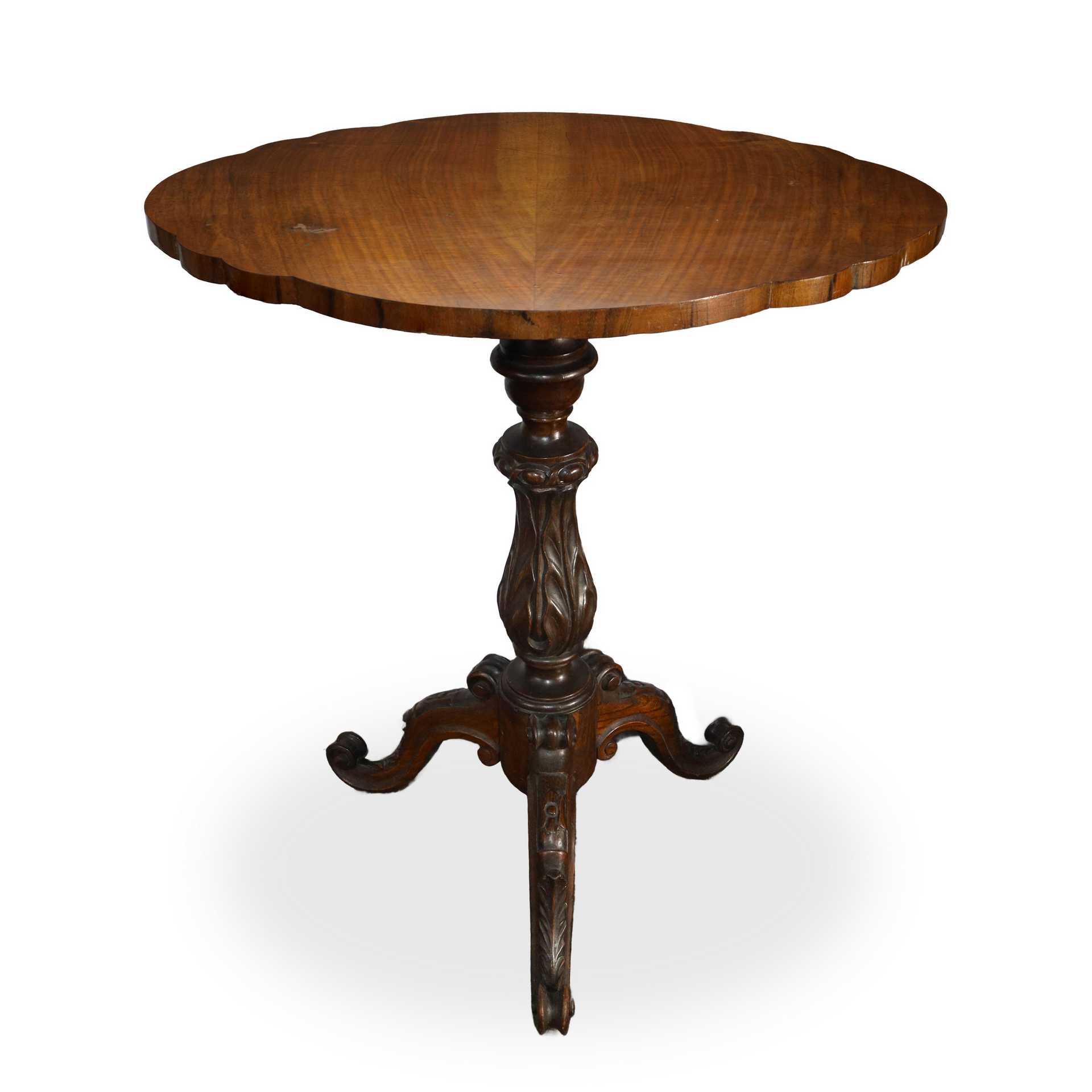 Tavolo a biscotto in noce con piede a tre razze, 19° secolo