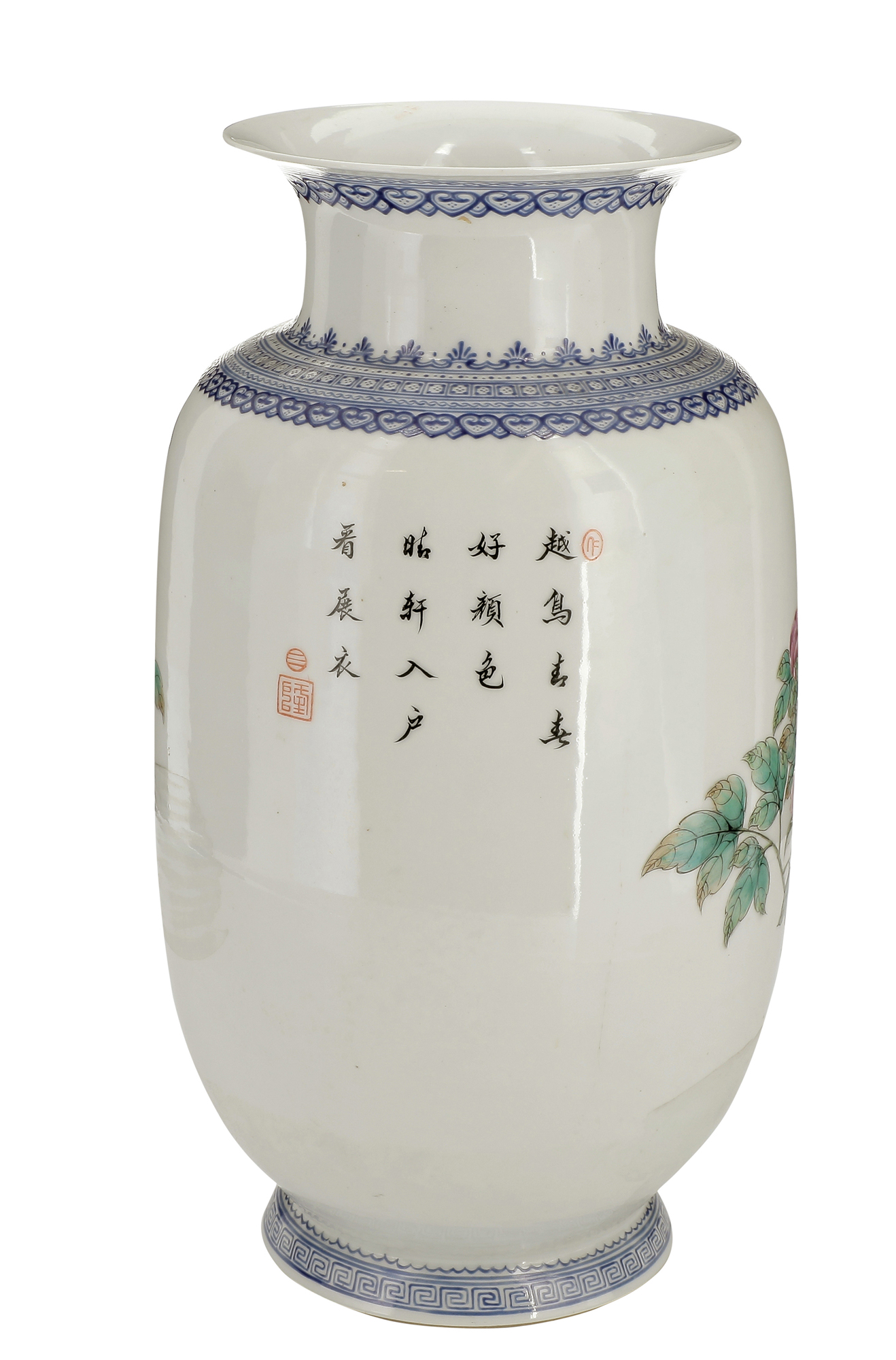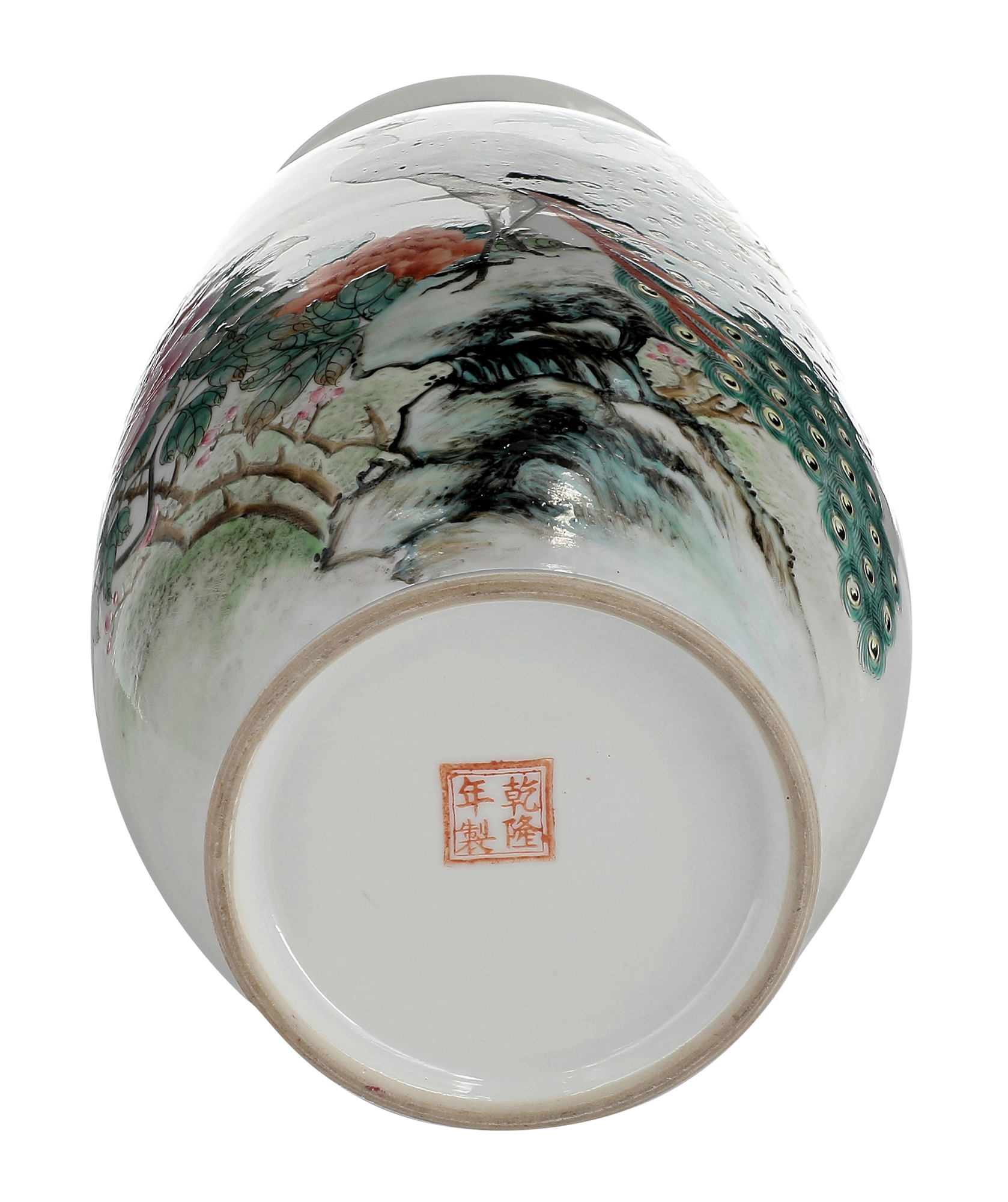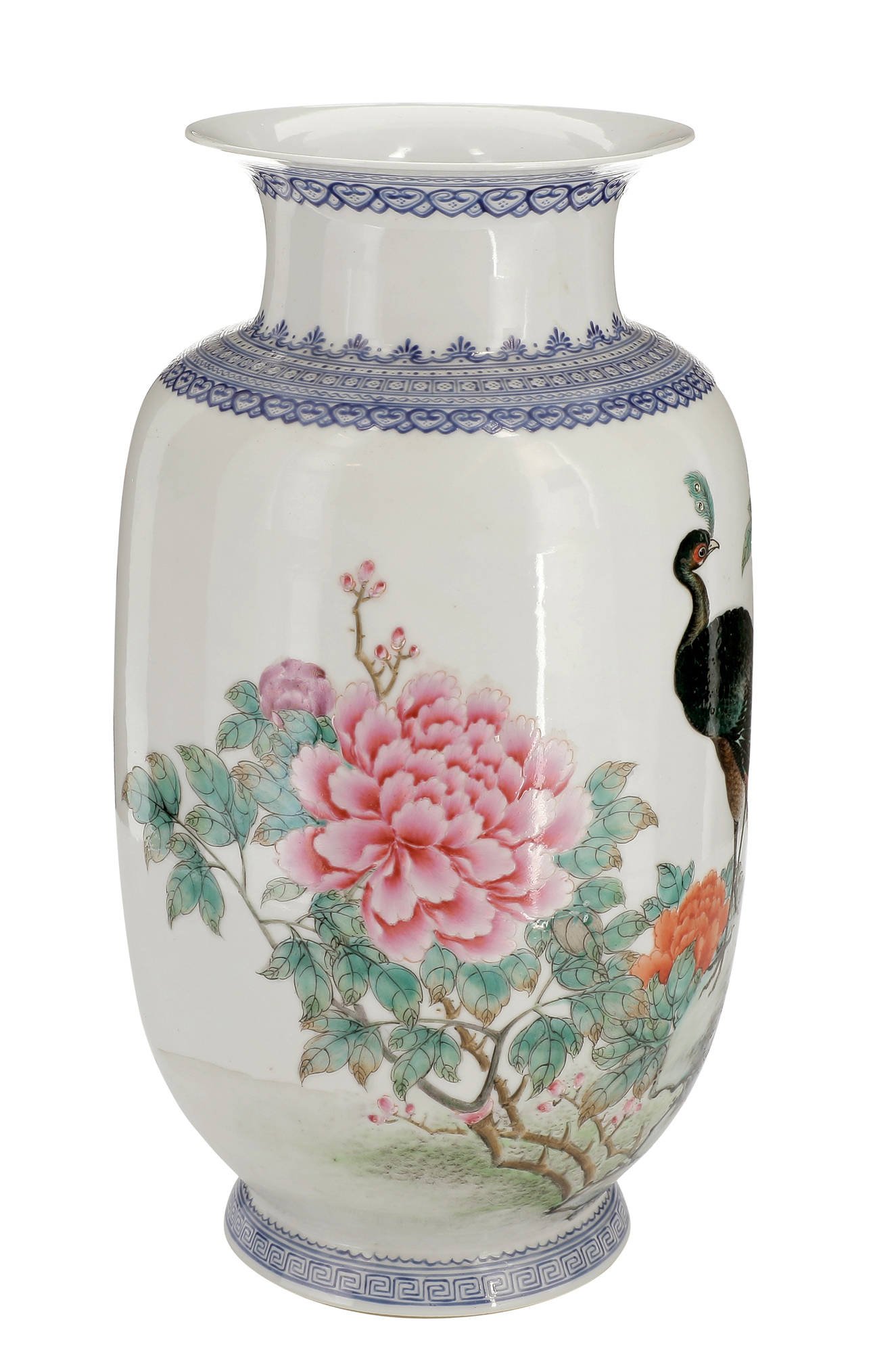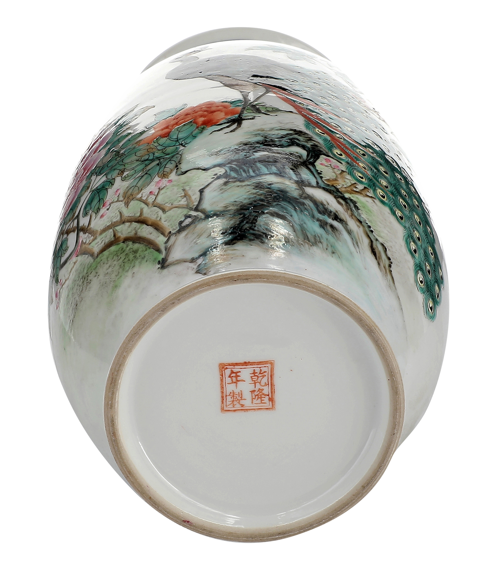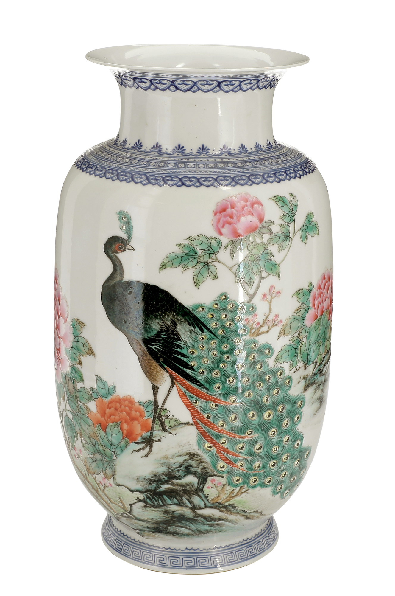 Cina Vaso a balaustro con decoro di pavone e peonie