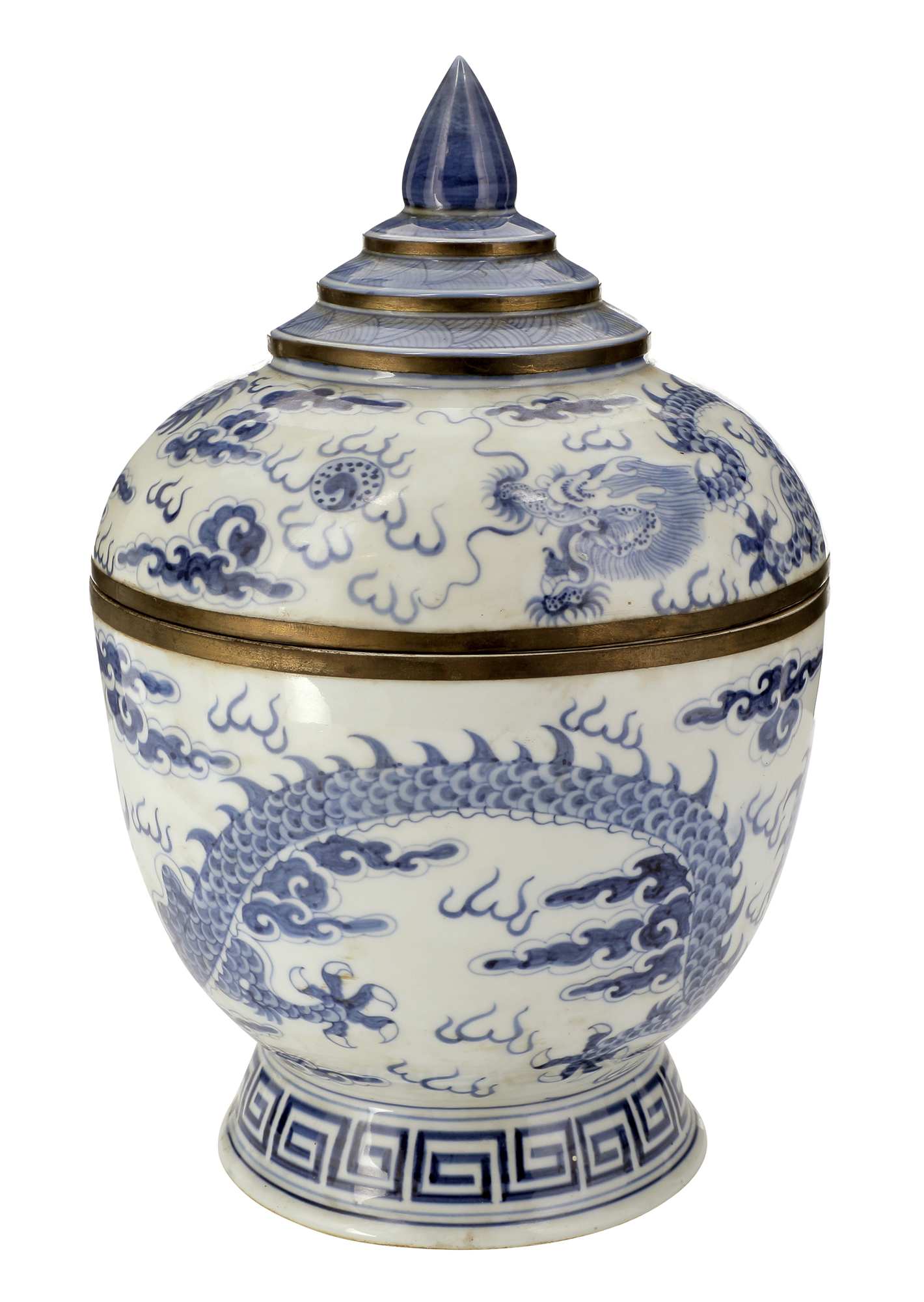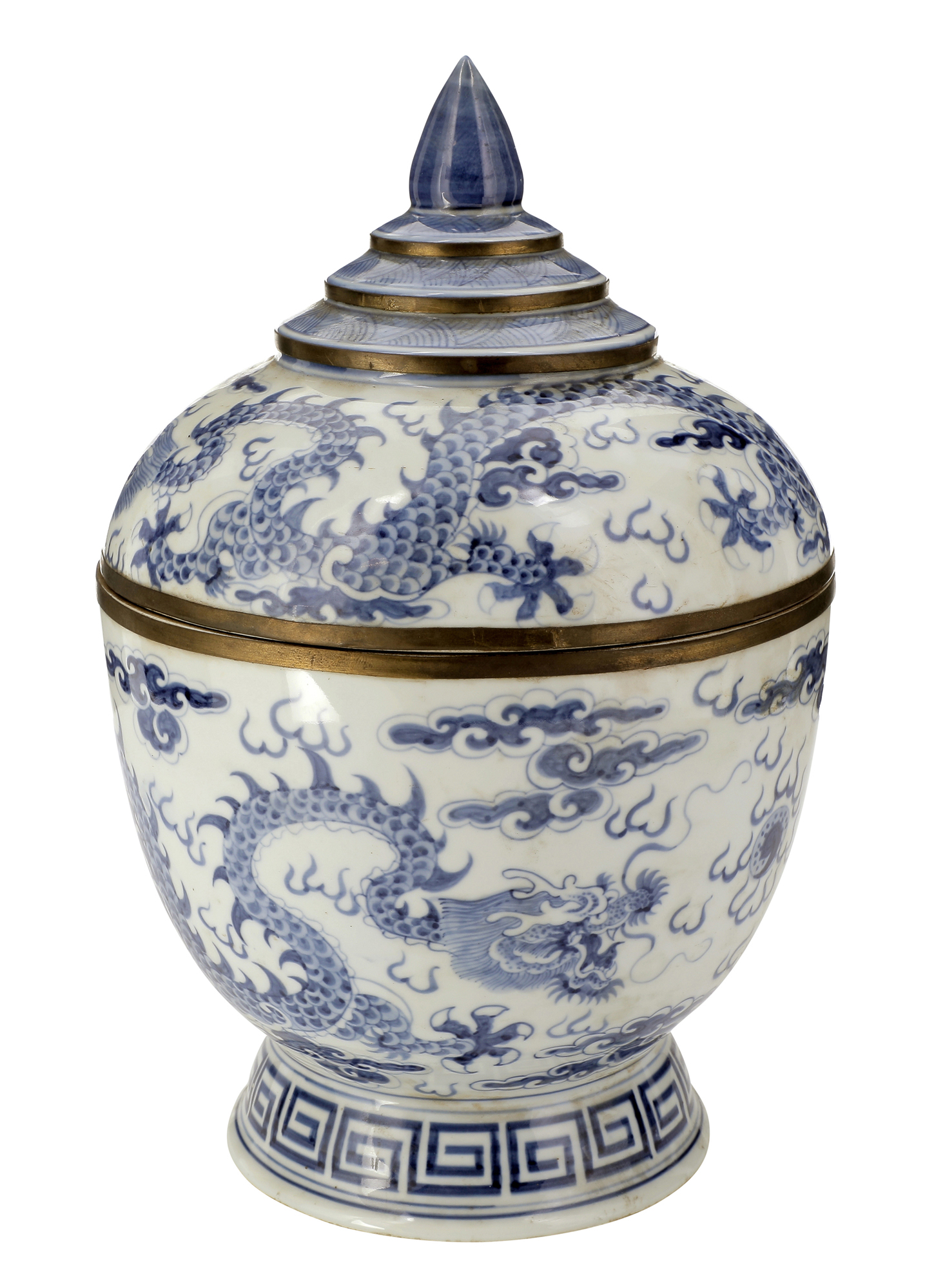 Cina. I metà del XX secolo Grande ciotola con coperchio e decoro di draghi