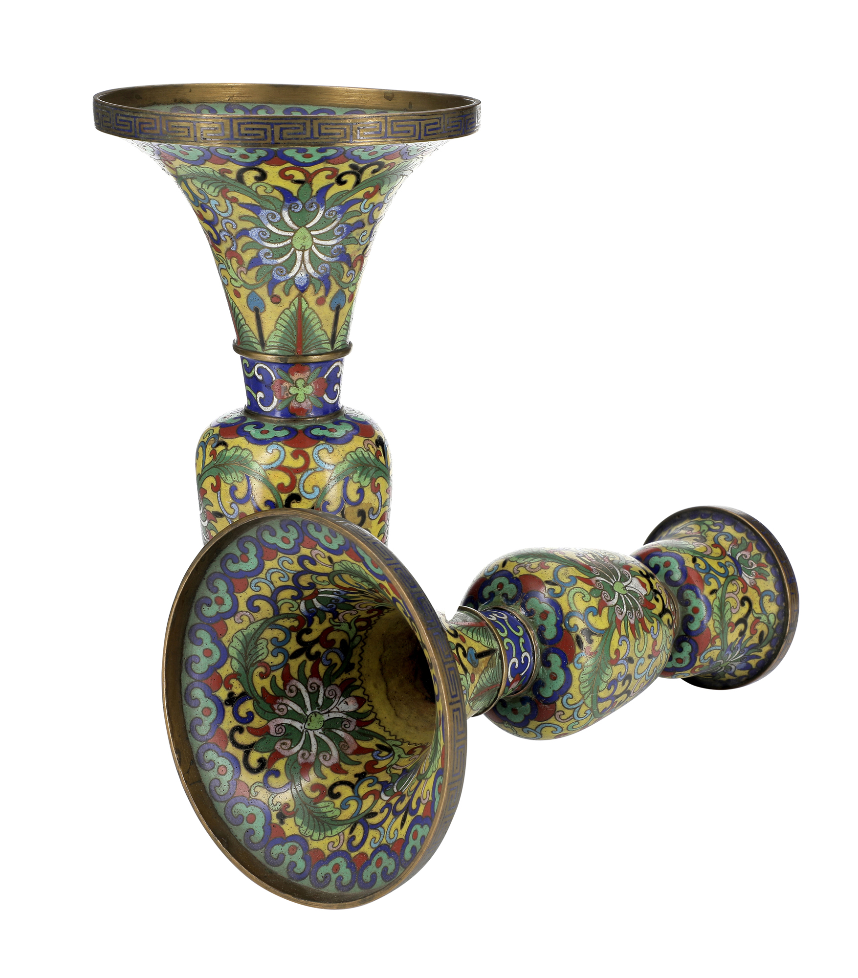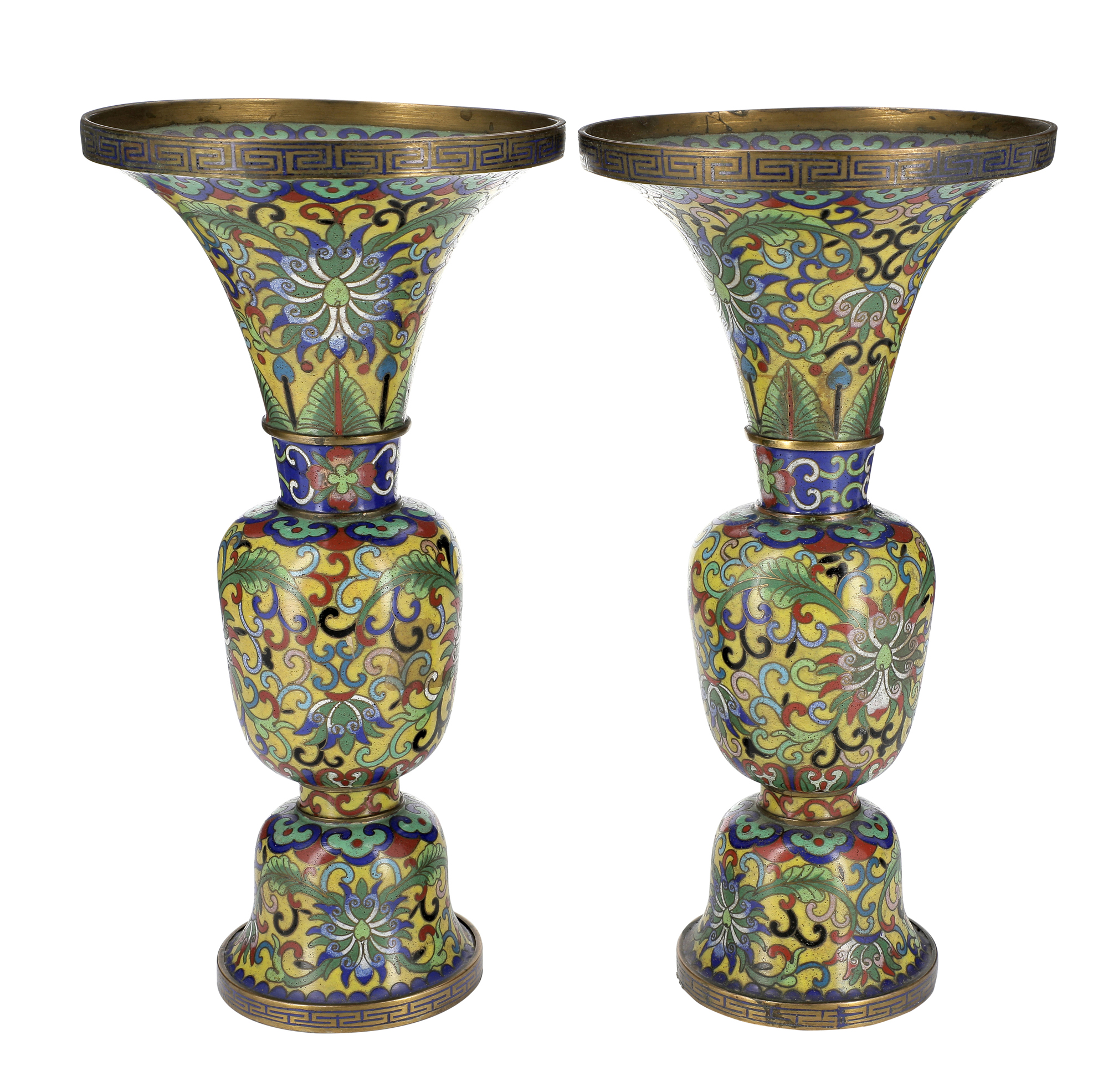 Cina. XX secolo Coppia di vasi con decoro floreale