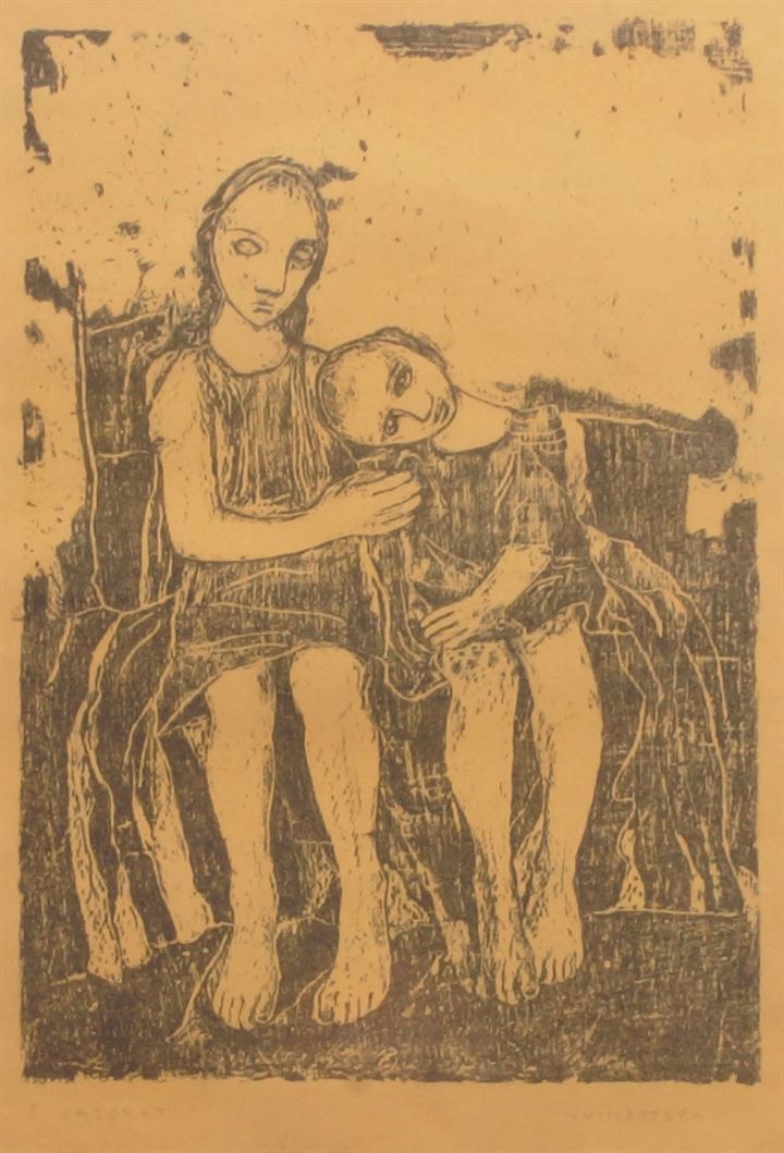 Lotto 45 | CASORATI FELICE Novara 1883 - 1963 Torino "Due bambine" 49x53 foglio, 35,5x24...