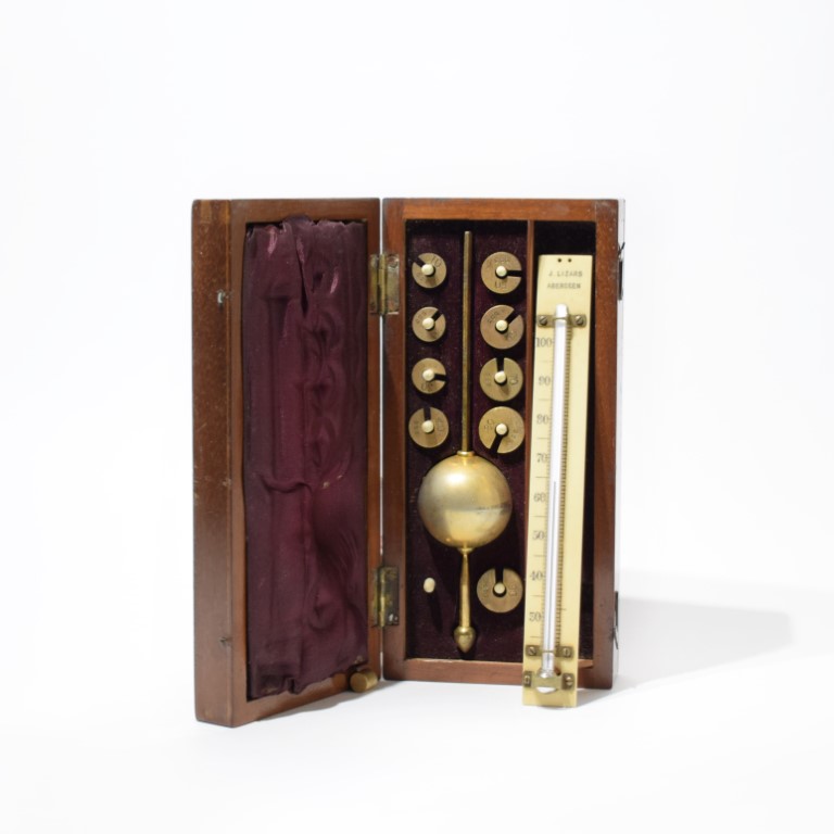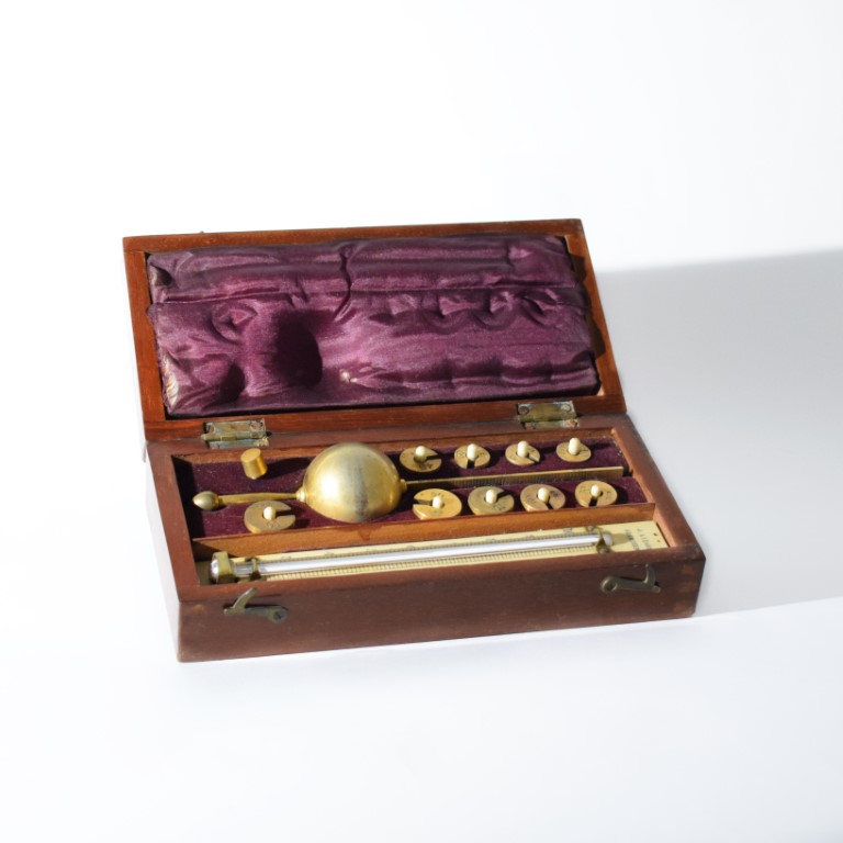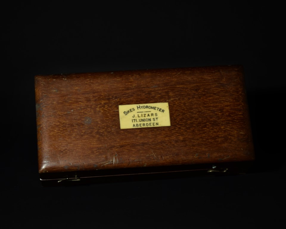 A Sikes hydrometer set manufactured by J. Lizars in Aberdeen, in its original mahogany case in excellent condition.