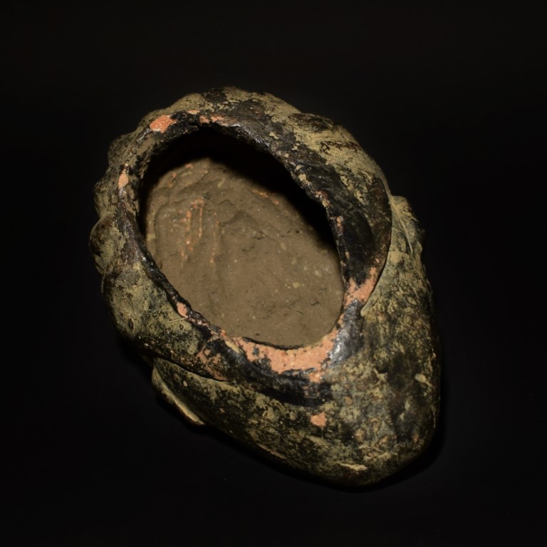 The hollow clay man's head depicts probably a high rank member of the Yoruba people with simple braided hairstyle.