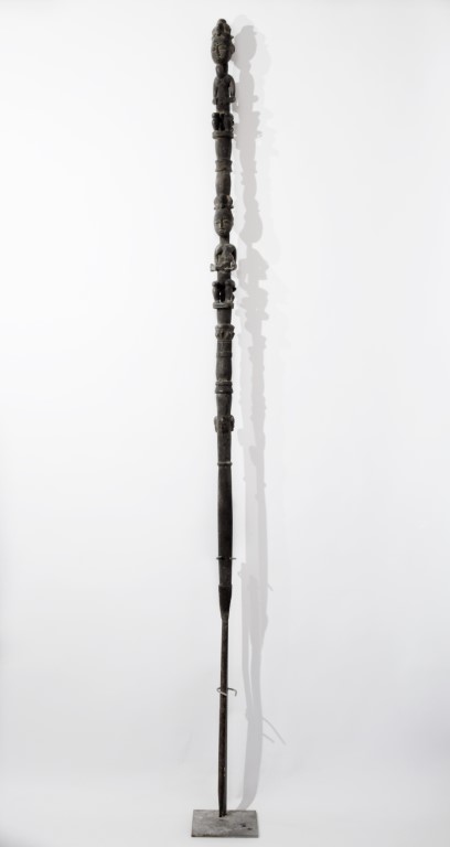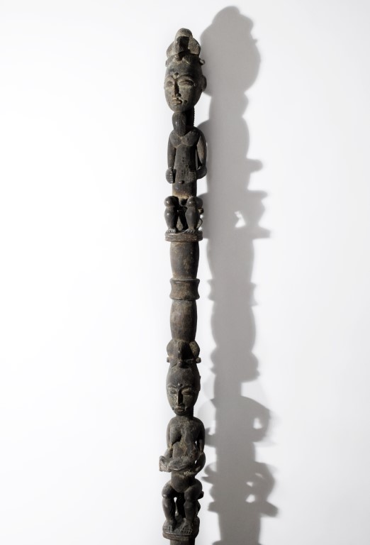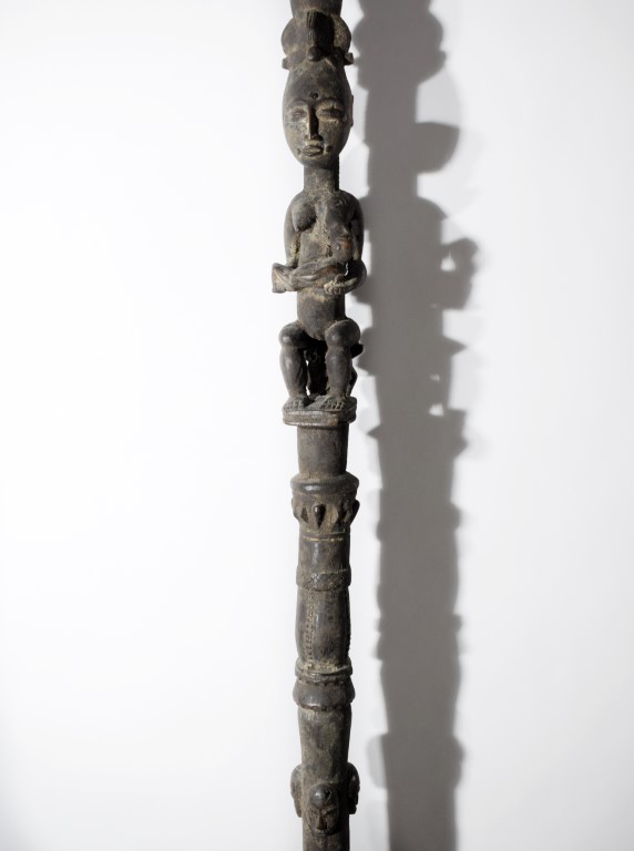 Ceremonial stick (Kpoman) characterized by the complex figurative apparatus consisting of the image of a man and the one of a breast-feeding mother. This type of ceremonial staffs were exclusive property of the Kpannyn, the head of the ceremonies performed during the tribe's sacral rites.