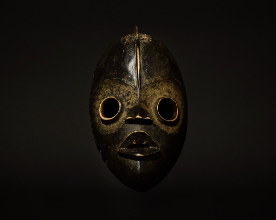 This type of mask, commonly known as 'racing masks', embodies the supernatural spirit Gle, secret god of the forest and tutelary deity of the Dan people, now skilled farmers but in recent past fearsome warriors.