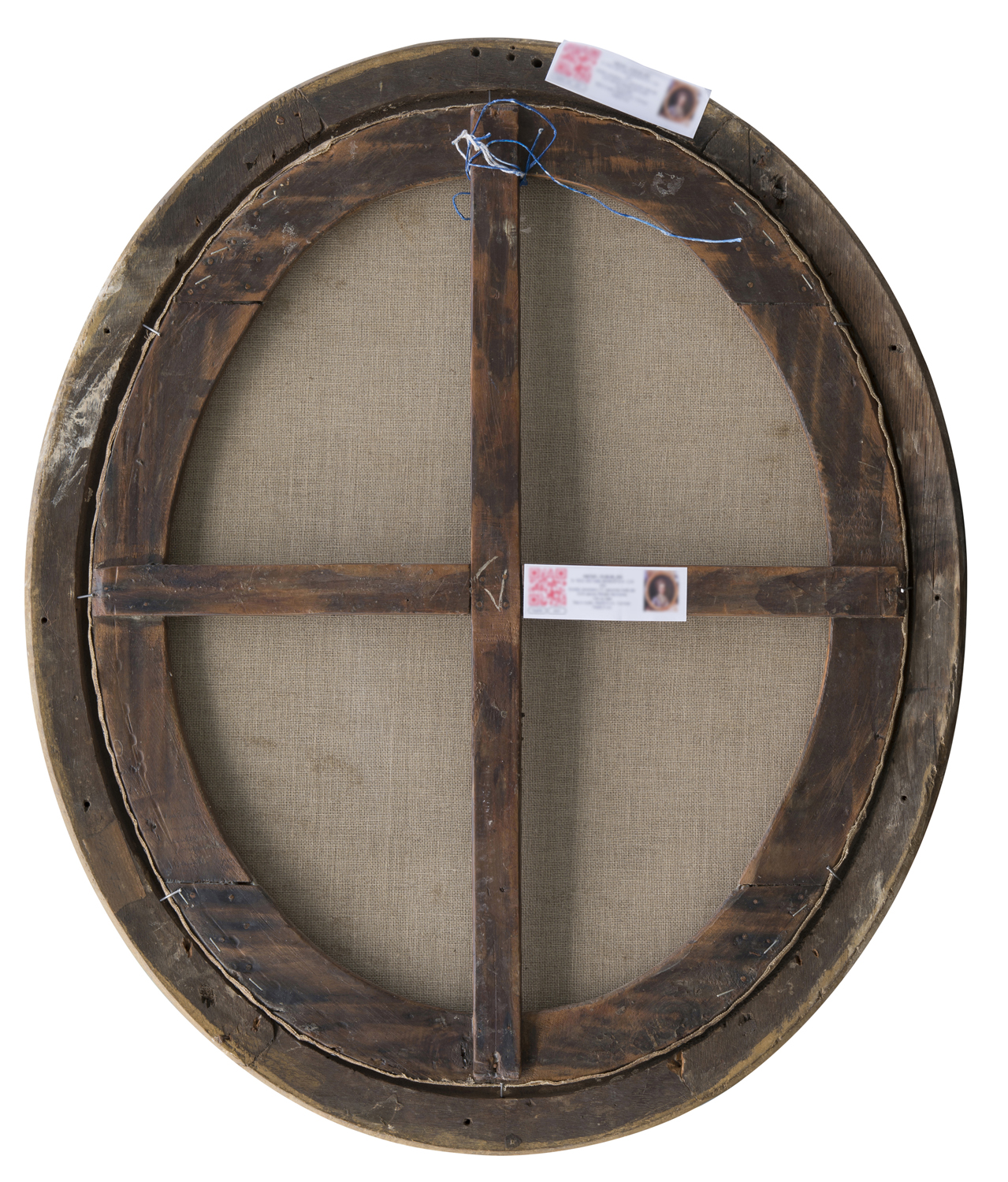 Stato di conservazione. Supporto: 70% (rintelo e rintelaiatura con telaio probabilmente di riuso; fessurazioni della cornice)