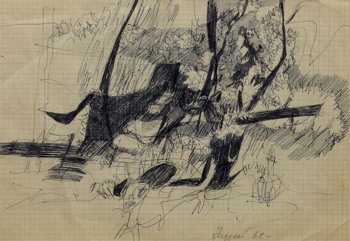 RUGGERI PIERO Torino 1930 - 2009 "Paesaggio" 1958 19,5x28,2 matite su carta...