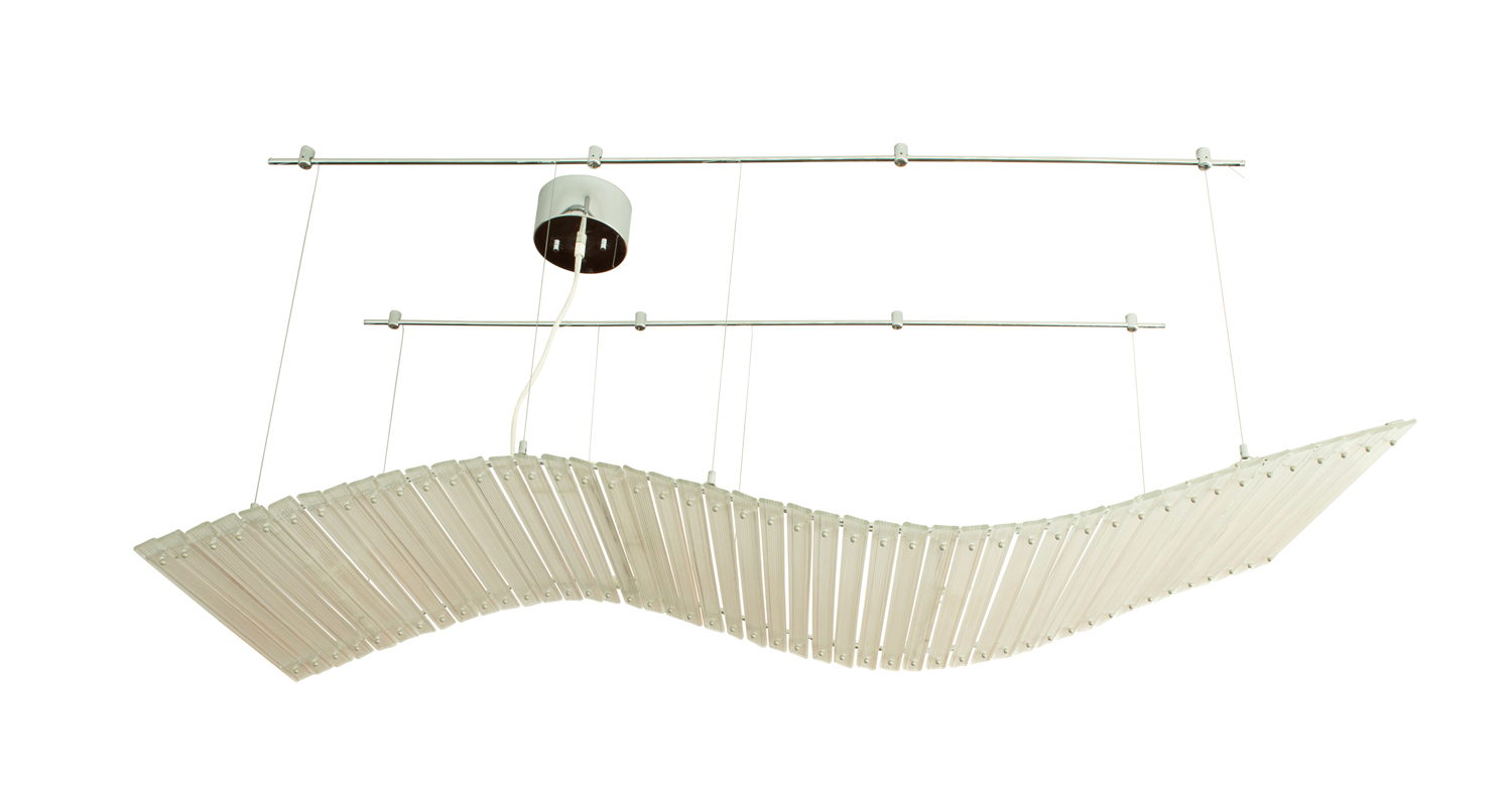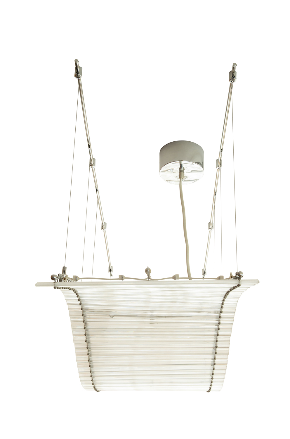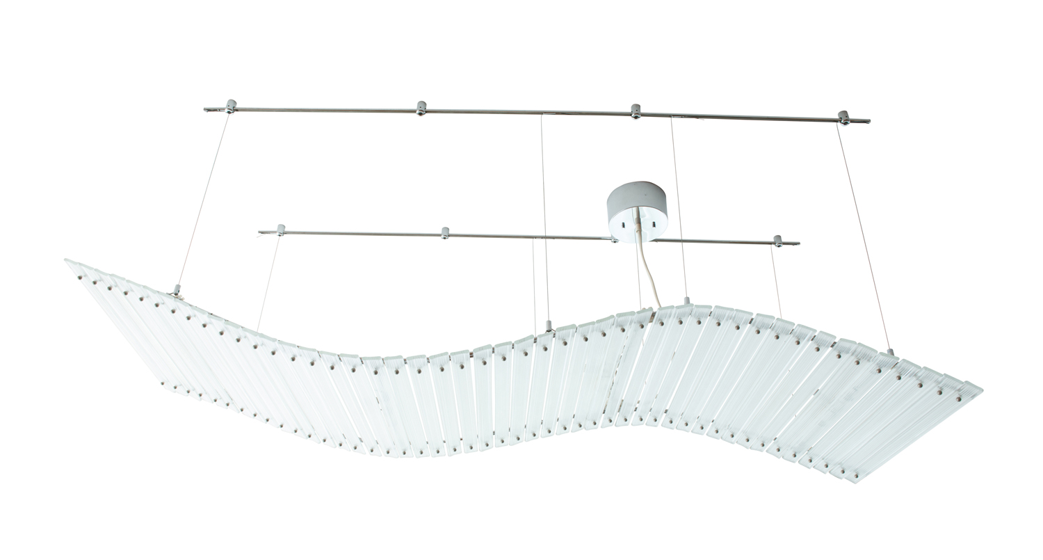 Il Tappeto volante è un lampadario concepito nel 2000 da Venini come sequenza di vetri a nastro in funzione di superfici luminose. I vetri sono fissati su una struttura metallica flessibile, ancorata al soffitto mediante cavi d’acciaio. Le varianti quanto a forma, curvatura e lunghezza sono potenzialmente infinite. Il vetro a "rigadin", una tecnica caratterizzata da sottili costolature ottenute soffiando il vetro in uno stampo aperto a lame.