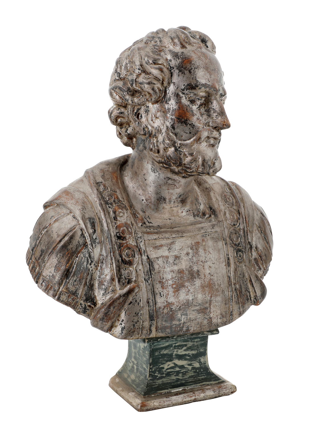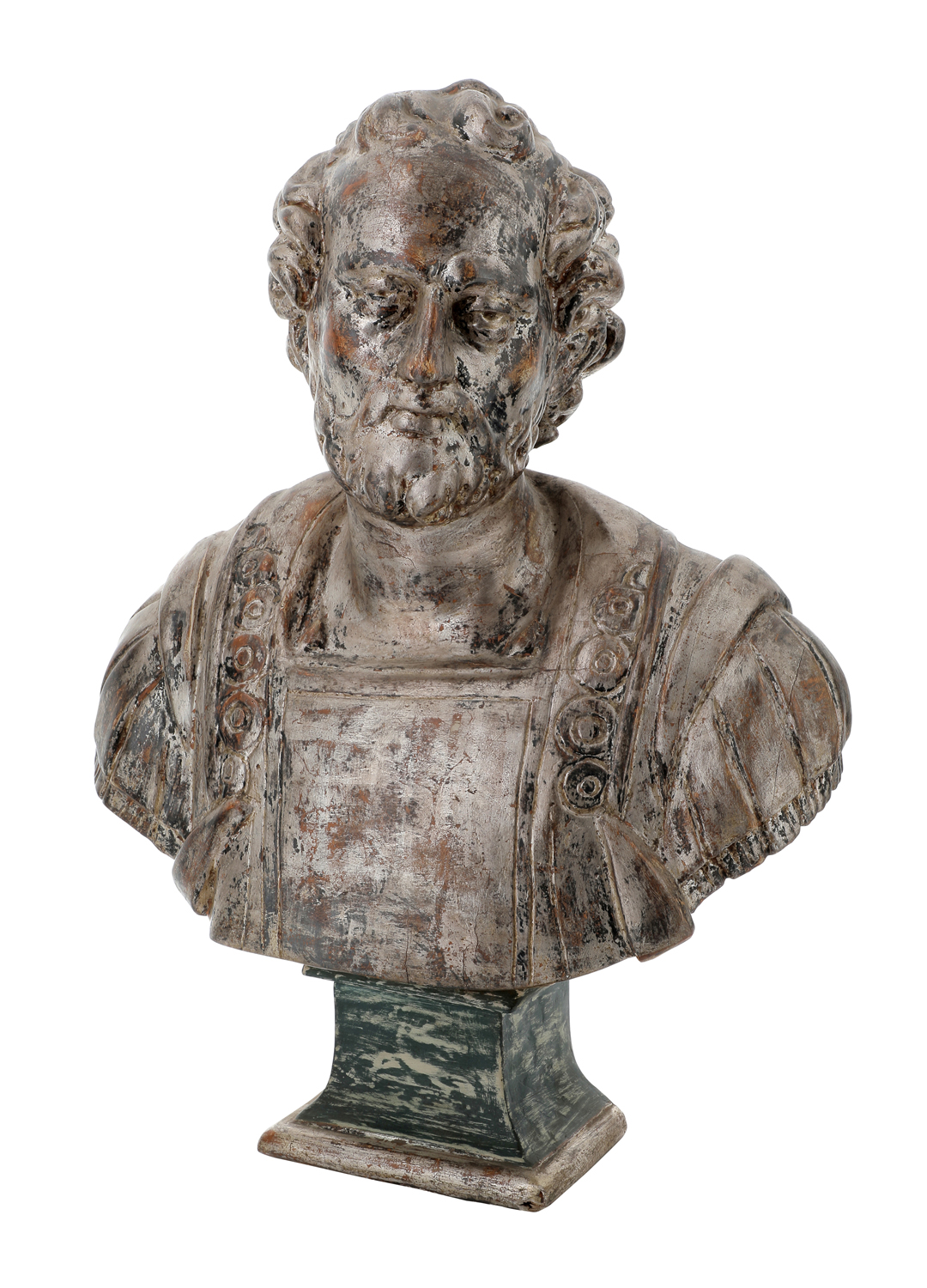Anne Schulz colloca il busto in esame nelle produzioni italiane del Cinquecento (comunicazione dell'11 ottobre 2021), ambito meglio precisato da Giulia Ericani con "riferimento alla lezione dello scultore in marmo e in stucco Agostino Rubini" (10 ottobre 2021). Di Rubini, scultore raro e dalla cronologia incerta, nipote e allievo di Alessandro Vittoria, sono note, oltre gli ornamenti dei timpani del Ponte di Rialto e alle decorazioni della facciata della chiesa di San Lorenzo a Mestre, le effigi di Pompeo Trissino e Vincenzo Garzadori al Teatro Olimpico di Vicenza. A Villa Capra detta la Rotonda, a Riviera Berica, sulla scalinata di accesso alla villa si erge una figura allegorica, recentemente attribuita al maestro (I. Turetta, in M. De Vincenti, Scultura nei giardini delle ville venete. Il territorio Vicentino, Venezia 2014, pp. 312-321 cat. 72).