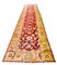 Il tappeto si sviluppa con una serie di palmette incolonnate sull’asse centrale, accompagnate da foglie arcuate. Lo stesso motivo si ripete nella bordura che però risulta essere originale soltanto nella parte sinistra. La bordura di destra è completamente ritessuta, il che induce a pensare che il tappeto in origine avesse formato completamente diverso e non di corsia.