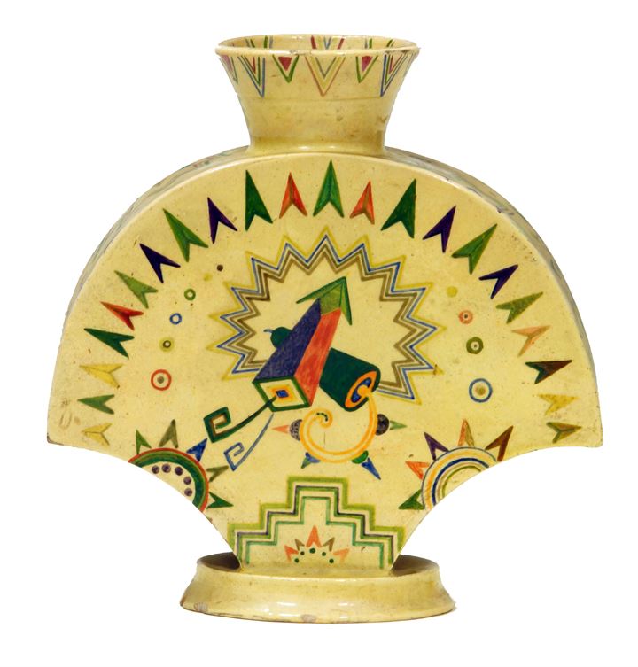 VASO IN CERAMICA policroma, struttura a forma di ventaglio, 1930, decori...