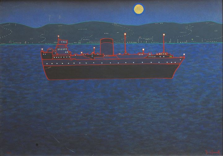 CASORATI FRANCESCO Torino 1934 - 2013 "La nave di notte" 1976 50x70 tempera...