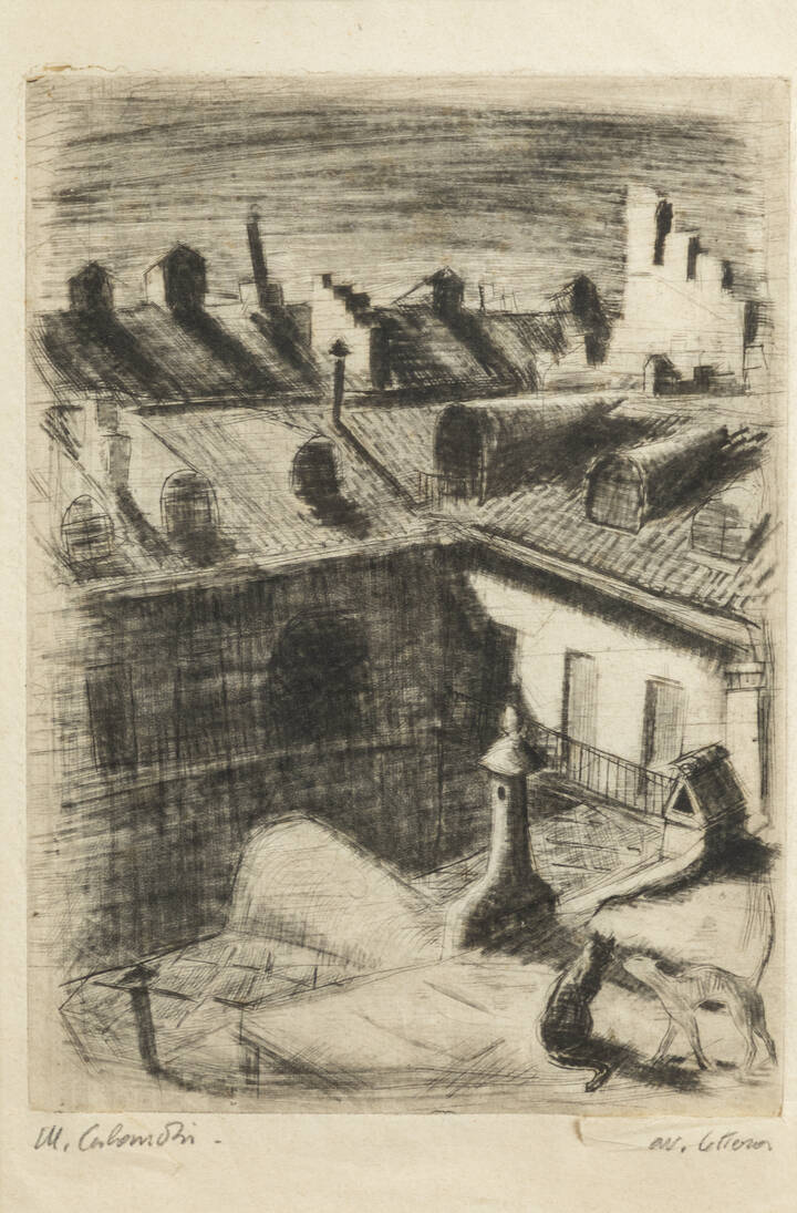 MARIO CALANDRI<BR>Torino 1914 - 1993<BR>"Tetti"
