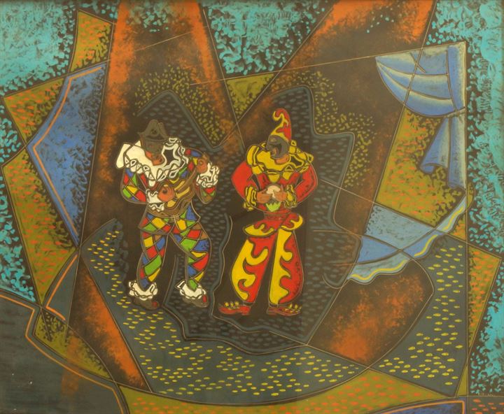 ORIANI PIPPO Torino 1909 - 1972 Roma "Clown all'italiana" anni '960/70 50x60...