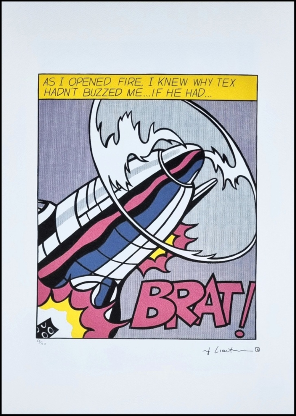 LICHTENSTEIN ROY New York 1923 - 1997 "Senza titolo" Riproduzione litografica offset cm 35x50. Firma in stampa sul fronte in basso a destra, tiratura a sinistra. Sul retro ologramma di autenticità.