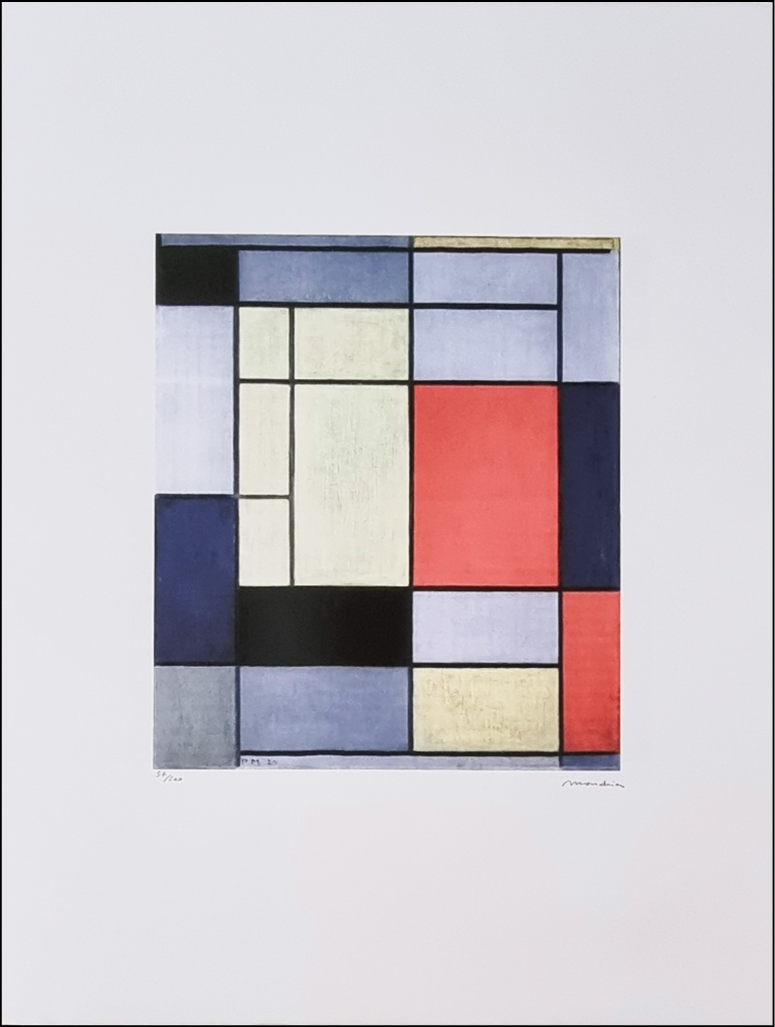 MONDRIAN PIET Paesi Bassi 1872 - New York 1944 "Senza titolo" Riproduzione litografica offset cm 50x66. Firma in stampa sul fronte in basso a destra, tiratura xx/200 e timbro a secco a sinistra. Sul retro ologramma di autenticità.