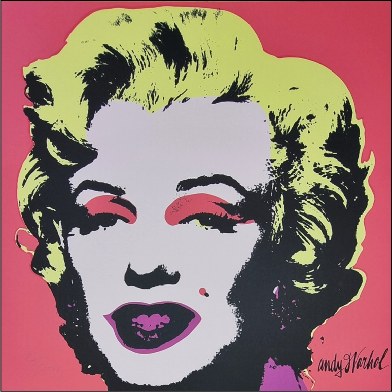 WARHOL ANDY Pittsburgh 1928 - New York 1987 "Marilyn" Litografia graphic printed offset, su carta Lenox Museum cm 59,5x60. Firma in stampa sul fronte in basso a destra, tiratura 826/2400 a sinistra. Sul retro timbro CMOA e ologramma.