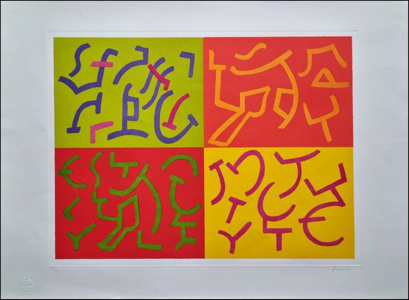 ACCARDI CARLA Trapani 1924 - Roma 2014 "Senza titolo" Acquaforte acquatinta su cartoncino cm 75x55. Firmata sul fronte in basso a destra, tiratura 79/80 e timbro a secco a sinistra. Sul retro timbro di garanzia a cura di Grafica d'Arte Lombardi.