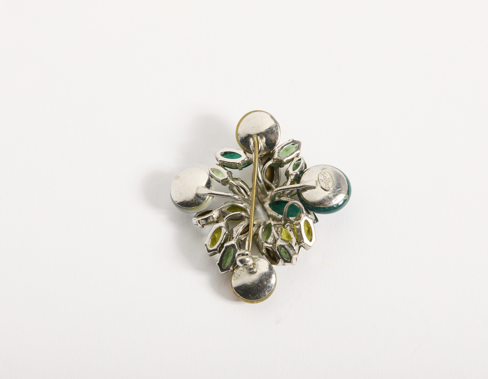DIOR CHRISTIAN (1905 - 1957) Christian Dior Spilla . . . Spilla con decoro a pietre dure. Logo al retro.