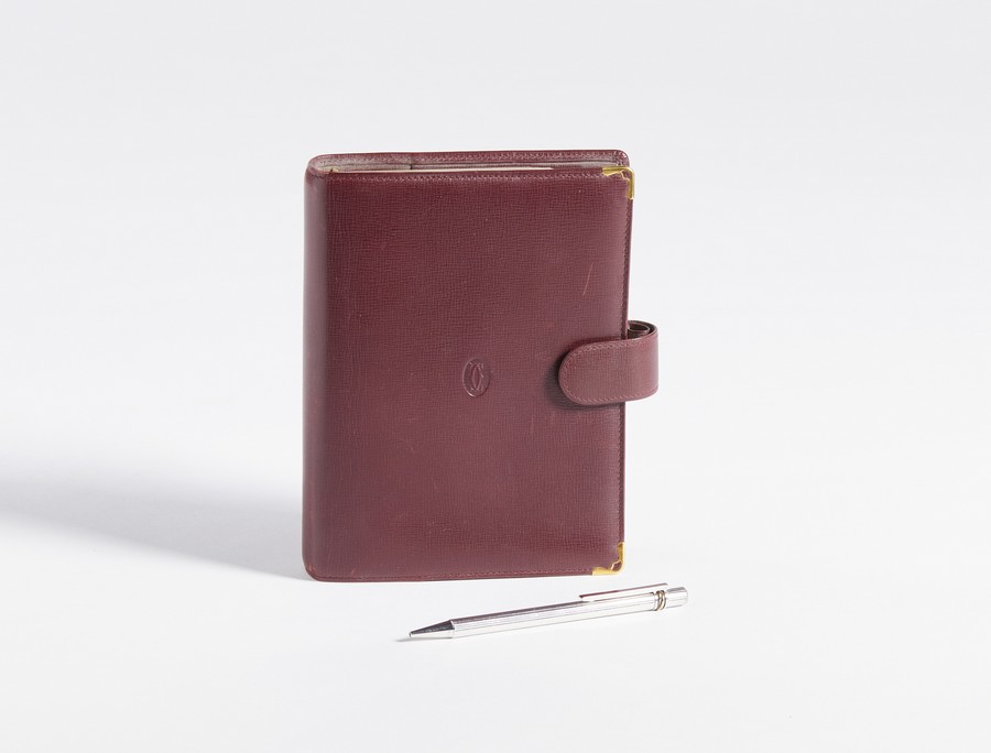 CARTIER - Custodia per agenda pelle bordeaux.